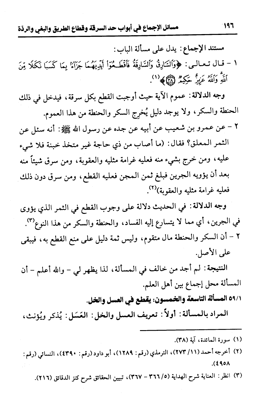 [59/ 1] المسألة التاسعة والخمسون: يقطع في العسل والخل.