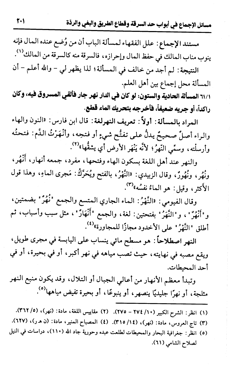 • المراد بالمسألة: أولًا: تعريف النهر لغة: قال ابن فارس: "النون والهاء والراء أصلٌ صحيحٌ يدلُّ على تفتُح شيءٍ أو فتحِه، وأنْهَرْتُ الدَّم: فتحتُه وأرسلْته، وسمِّي النّهرُ؛ لأنه يَنْهَر الأرض أي يشقُّها" (¬2).