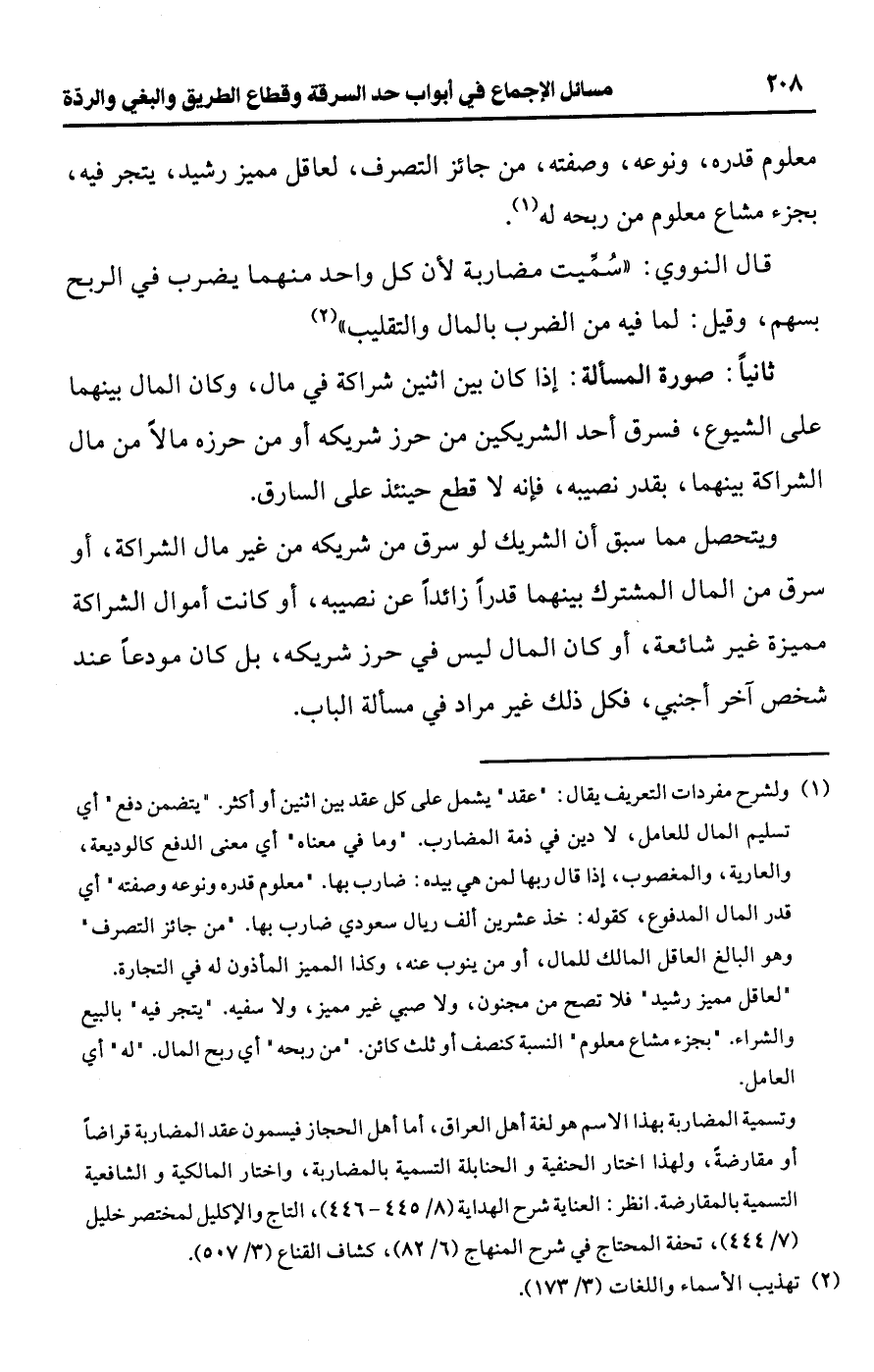 • ثانيًا: صورة المسألة: إذا كان بين اثنين شراكة في مال، وكان المال بينهما على الشيوع، فسرق أحد الشريكين من حرز شريكه أو من حرزه مالًا من مال الشراكة بينهما، بقدر نصيبه، فإنه لا قطع حينئذ على السارق.