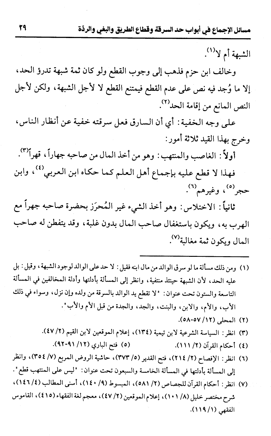(¬6) انظر: الإفصاح (2/ 214)، فتح القدير (5/ 373)، حاشية الروض المربع (7/ 354)، وانظر إلى المسألة بأدلتها في المسألة الخامسة والسبعون تحت عنوان: "ليس على المنتهب قطع".