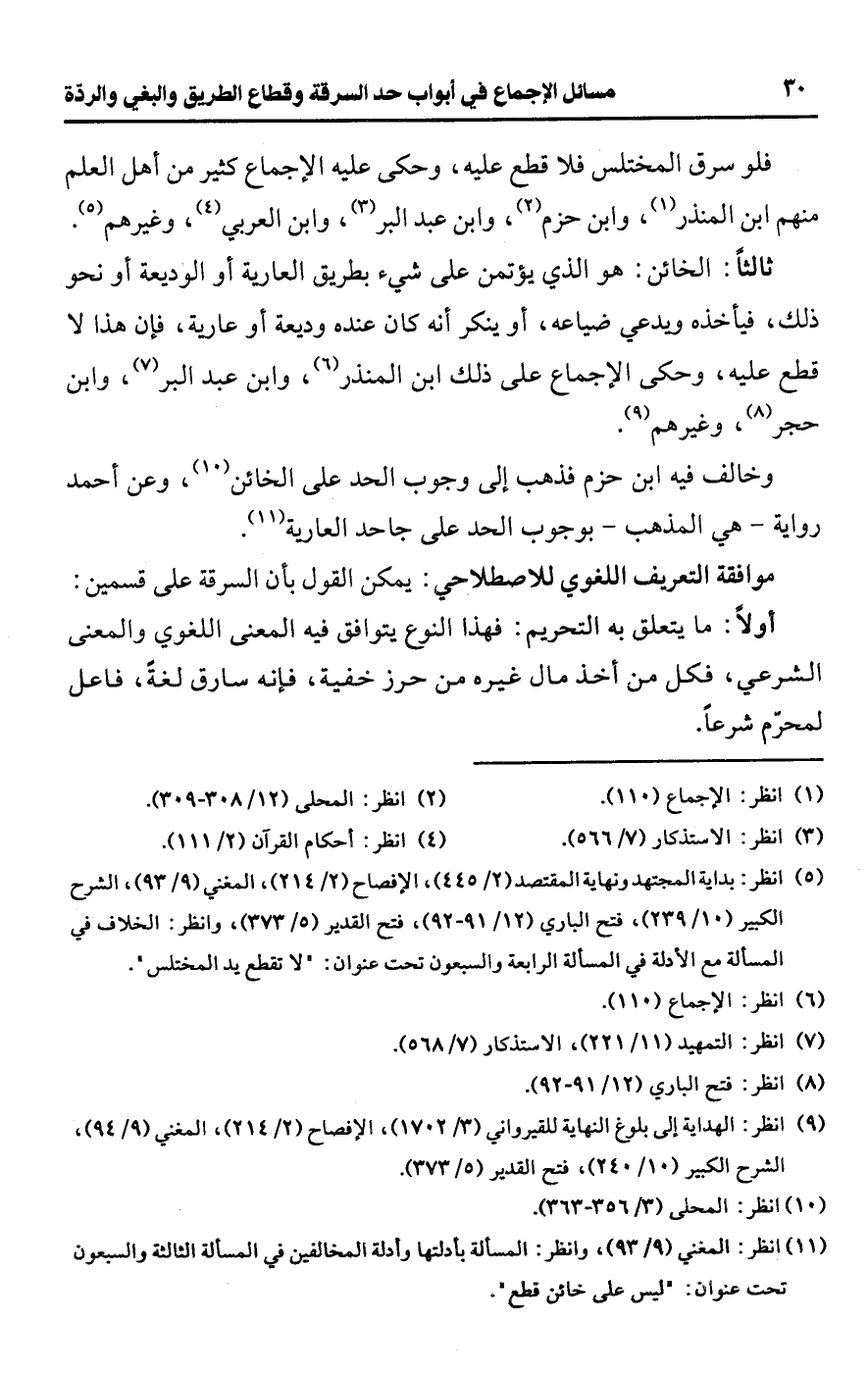 (¬5) انظر: بداية المجتهد ونهاية المقتصد (2/ 445)، الإفصاح (2/ 214)، المغني (9/ 93)، الشرح الكبير (10/ 239)، فتح الباري (12/ 91 - 92)، فتح القدير (5/ 373)، وانظر: الخلاف في المسألة مع الأدلة في المسألة الرابعة والسبعون تحت عنوان: "لا تقطع يد المختلس".
