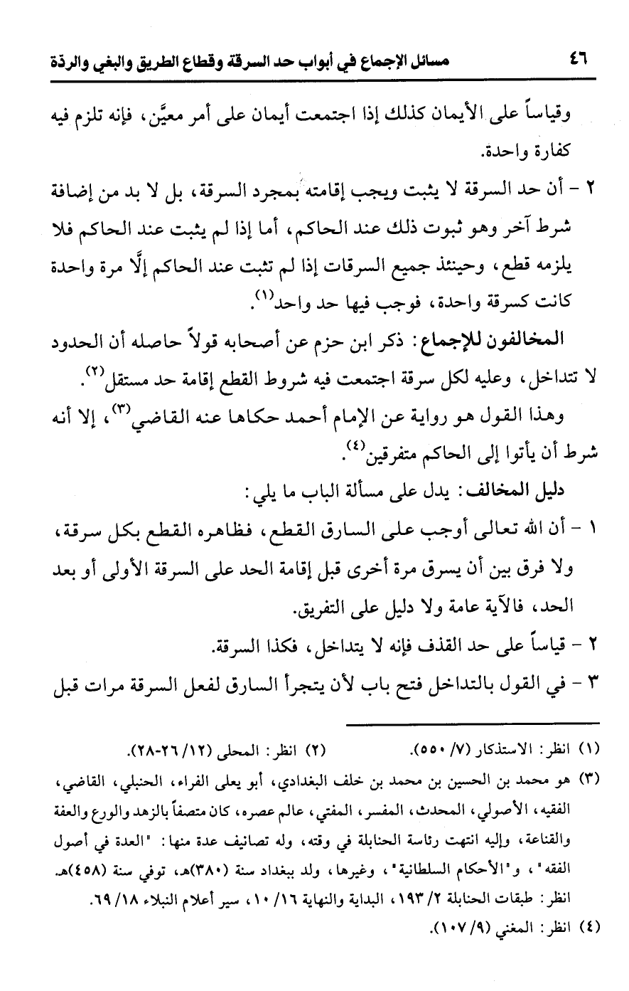 • المخالفون للإجماع: ذكر ابن حزم عن أصحابه قولًا حاصله أن الحدود لا تتداخل، وعليه لكل سرقة اجتمعت فيه شروط القطع إقامة حد مستقل (¬2).