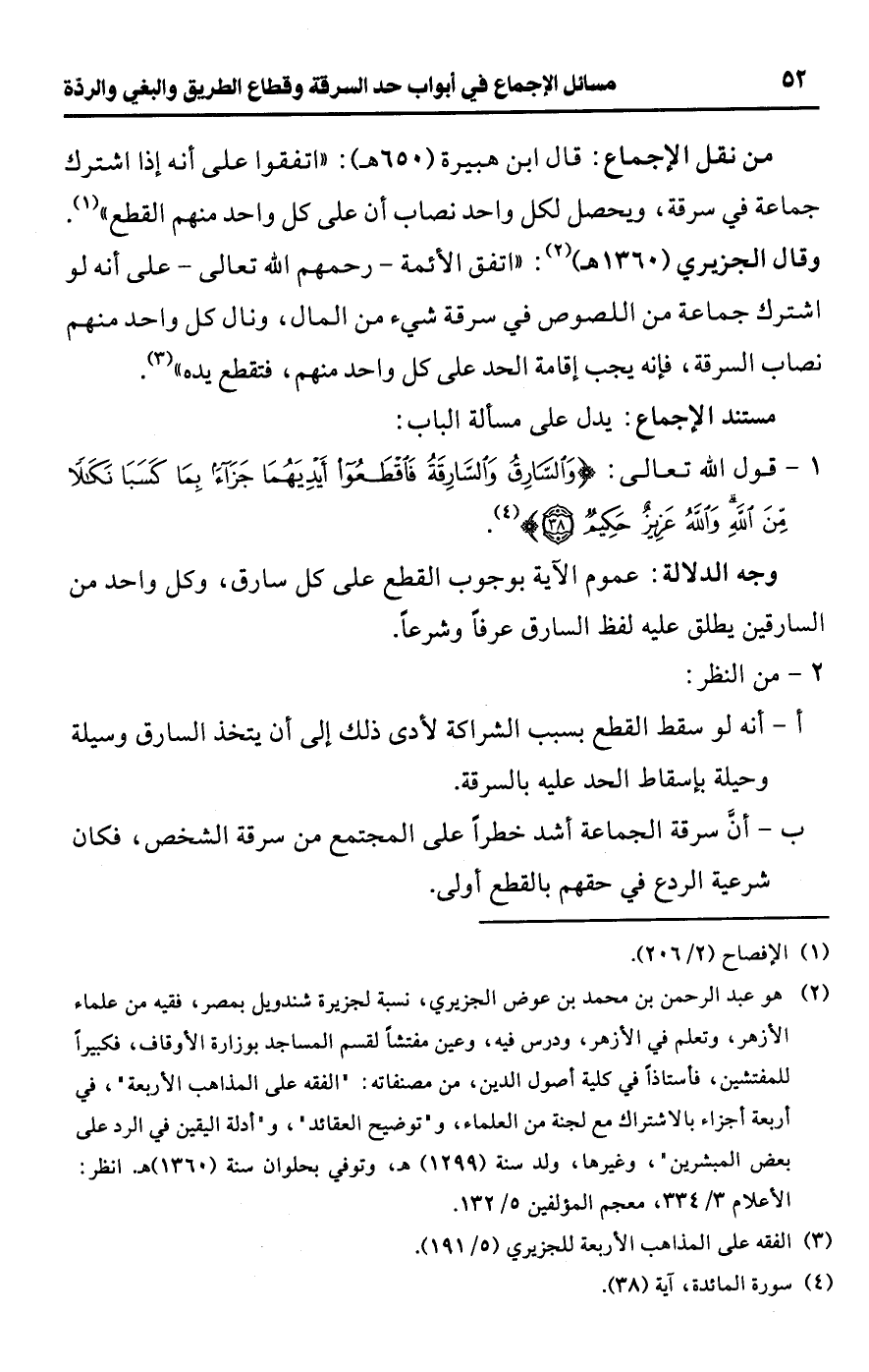 (¬2) هو عبد الرحمن بن محمد بن عوض الجزيري، نسبة لجزيرة شندويل بمصر، فقيه من علماء الأزهر، وتعلم في الأزهر، ودرس فيه، وعين مفتشًا لقسم المساجد بوزارة الأوقاف، فكبيرًا للمفتشين، فأستاذًا في كلية أصول الدين، من مصنفاته: "الفقه على المذاهب الأربعة"، في أربعة أجزاء بالاشتراك مع لجنة من العلماء، و"توضيح العقائد"، و"أدلة اليقين في الرد على بعض المبشرين"، وغيرها، ولد سنة (1299) هـ، وتوفي بحلوان سنة (1360) هـ. انظر: الأعلام 3/ 334، معجم المؤلفين 5/ 132.