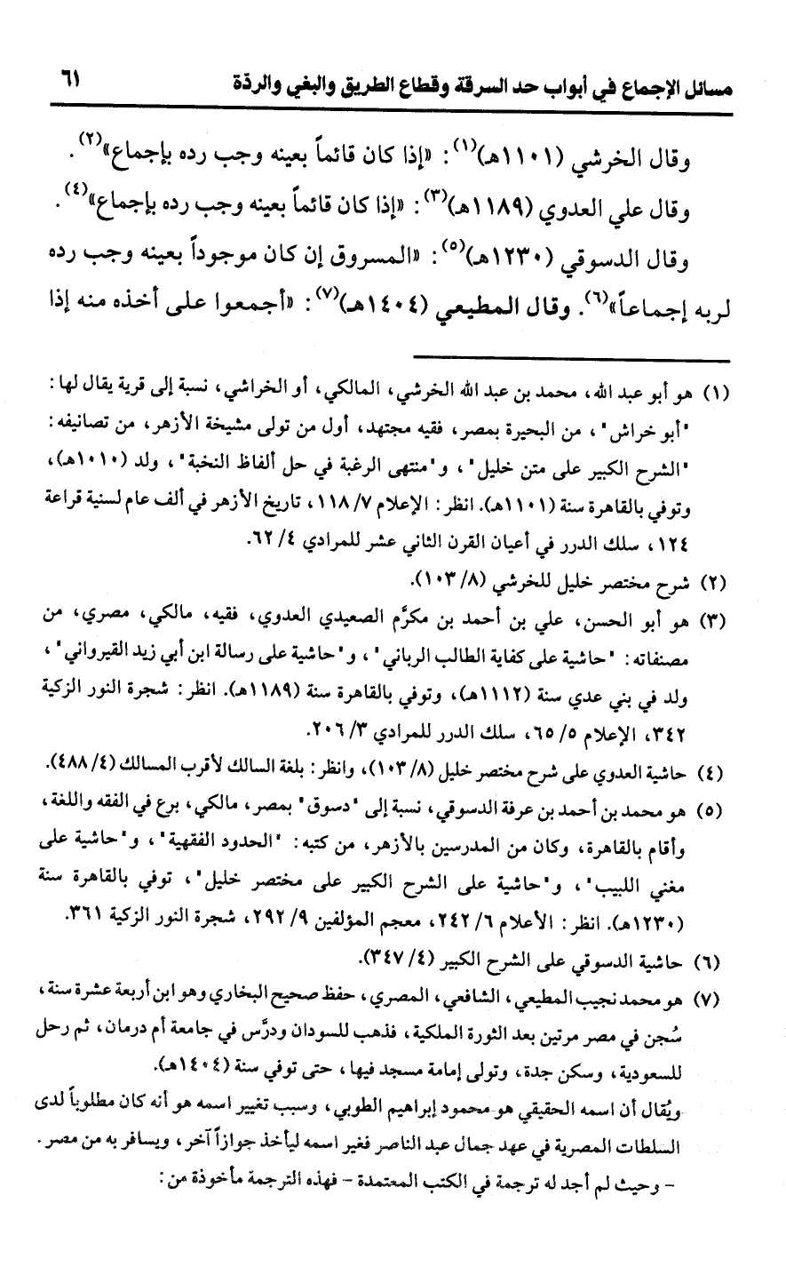 وقال الدسوقي (1230 هـ) (¬5): "المسروق إن كان موجودًا بعينه وجب رده لربه إجماعًا" (¬6). وقال المطيعي (1404 هـ) (¬7): "أجمعوا على أخذه منه إذا