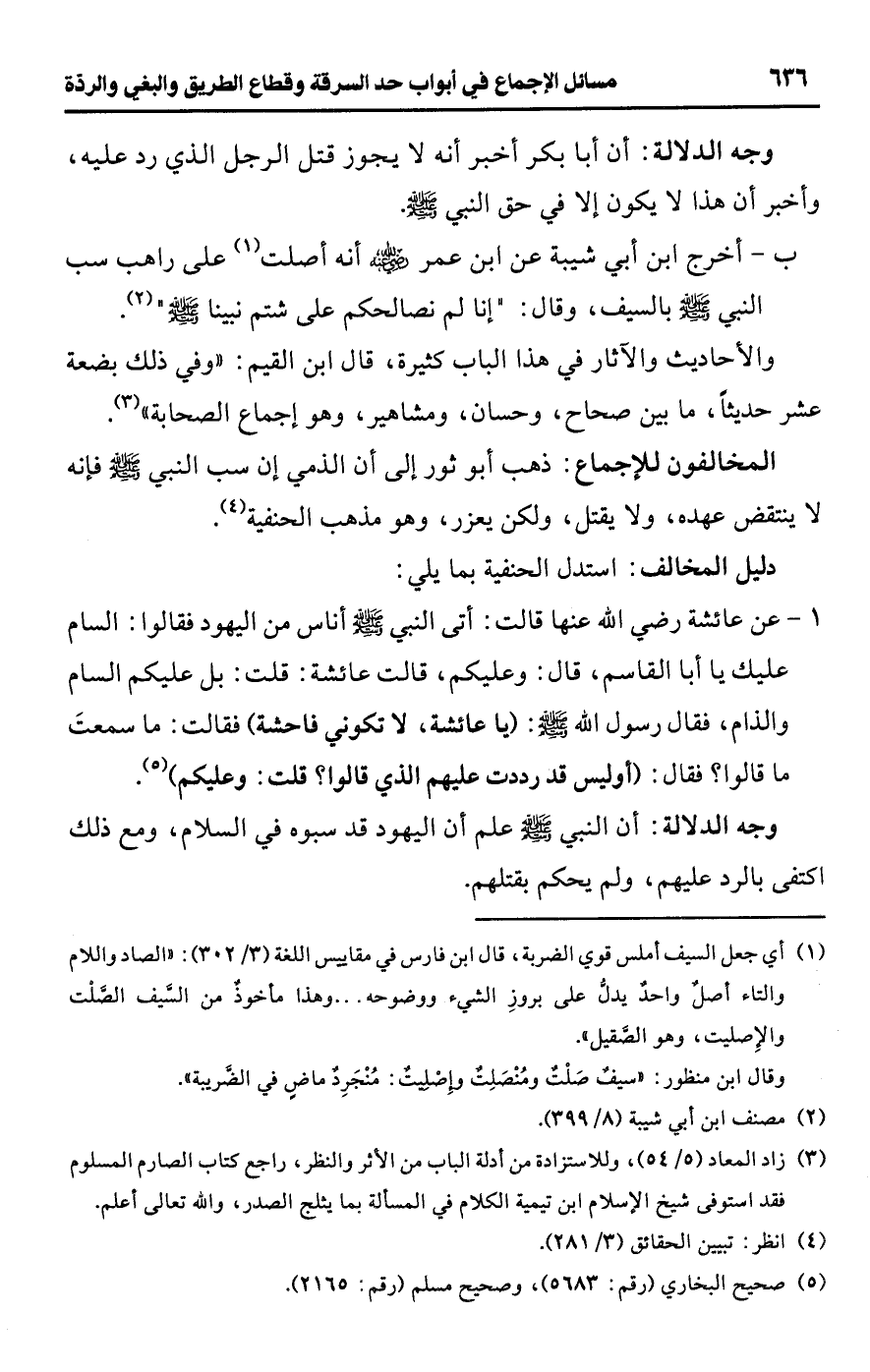 (¬3) زاد المعاد (5/ 54)، وللاستزادة من أدلة الباب من الأثر والنظر، راجع كتاب الصارم المسلوم فقد استوفى شيخ الإسلام ابن تيمية الكلام في المسألة بما يثلج الصدر، واللَّه تعالى أعلم.