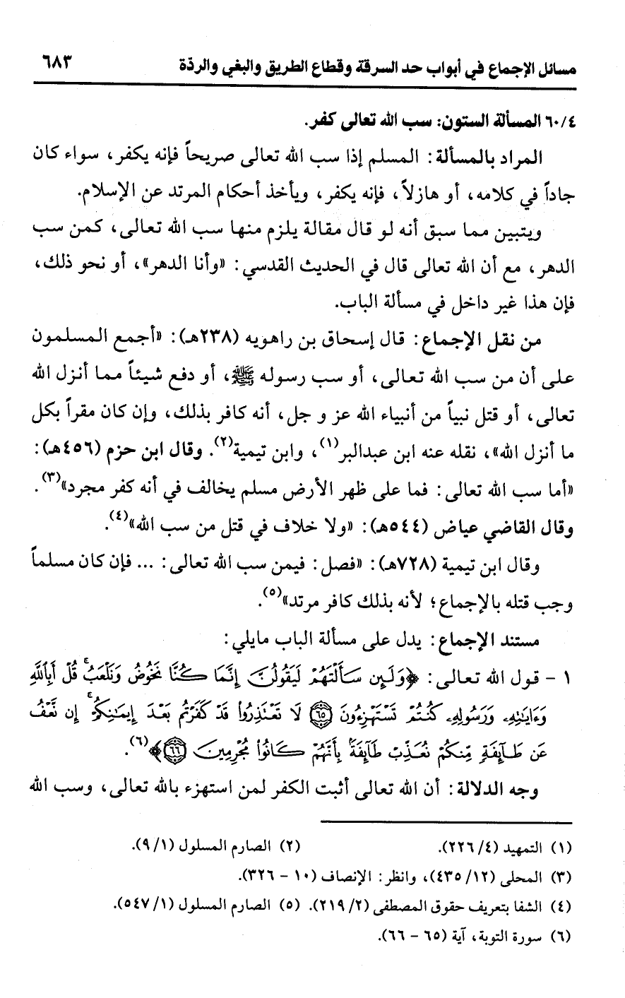 [60/ 4] المسألة الستون: سب اللَّه تعالى كفر.