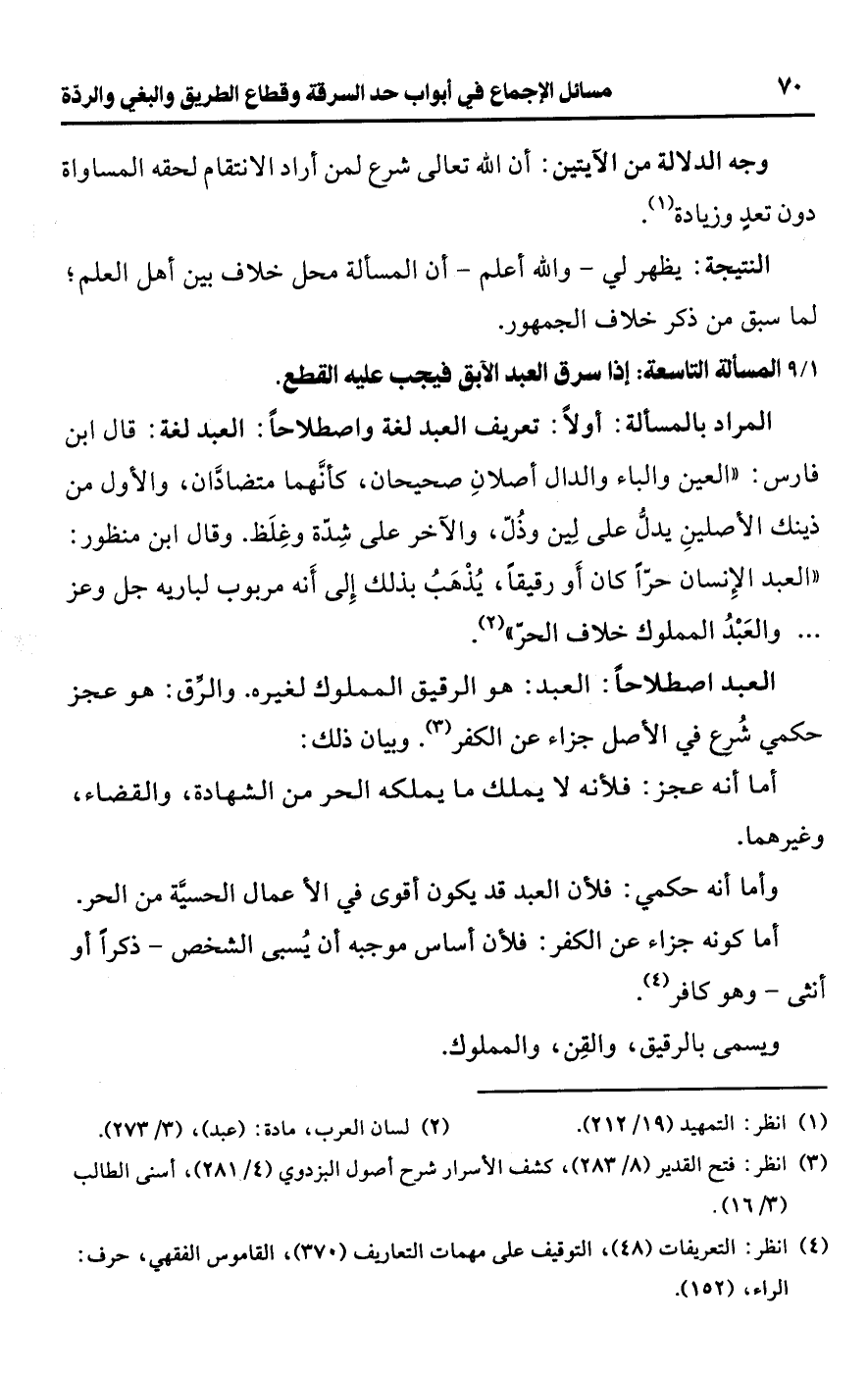 [9/ 1] المسألة التاسعة: إذا سرق العبد الآبق فيجب عليه القطع.