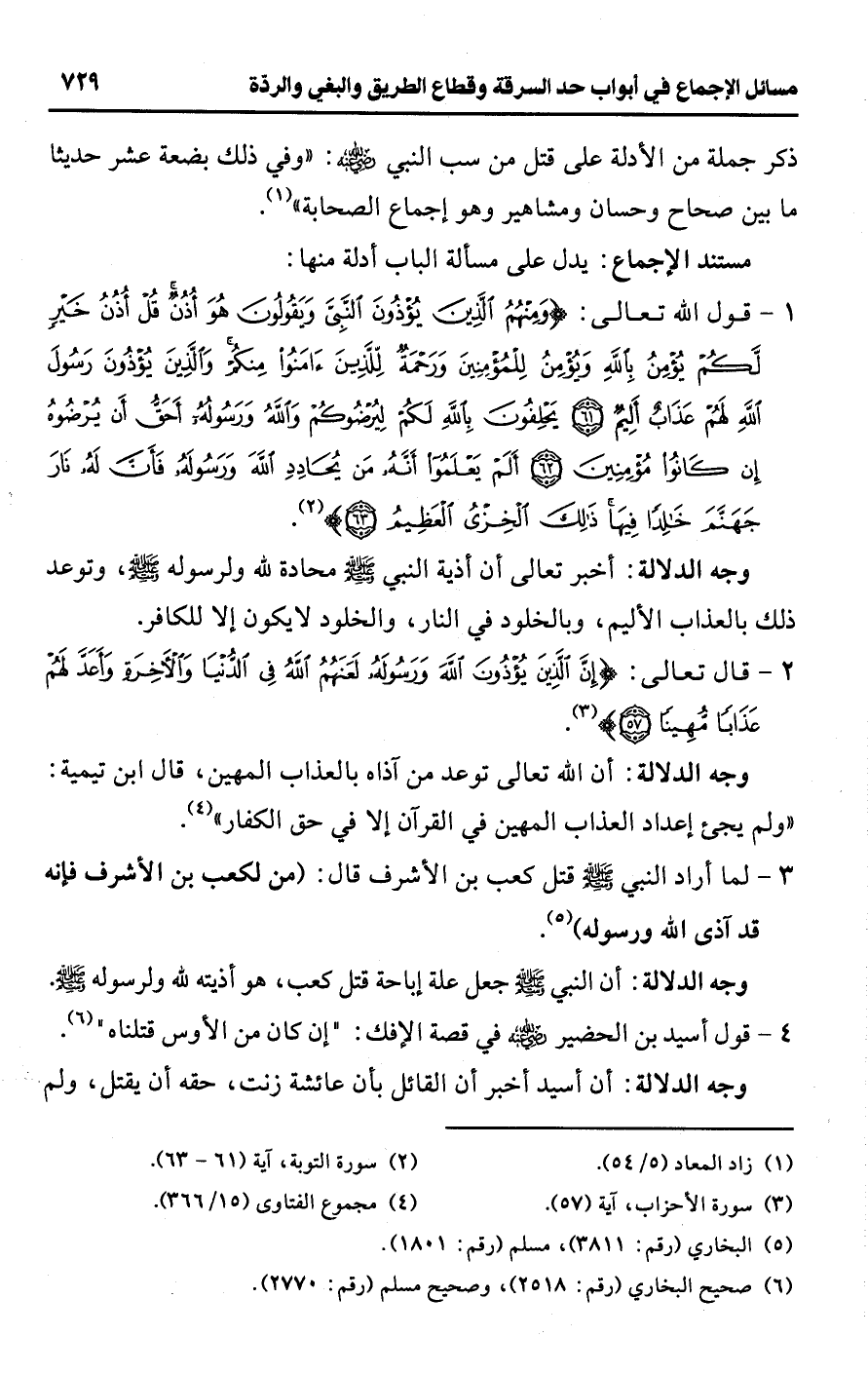 • وجه الدلالة: أخبر تعالى أن أذية النبي -صلى اللَّه عليه وسلم- محادة للَّه ولرسوله -صلى اللَّه عليه وسلم-، وتوعد ذلك بالعذاب الأليم، وبالخلود في النار، والخلود لا يكون إلا للكافر.