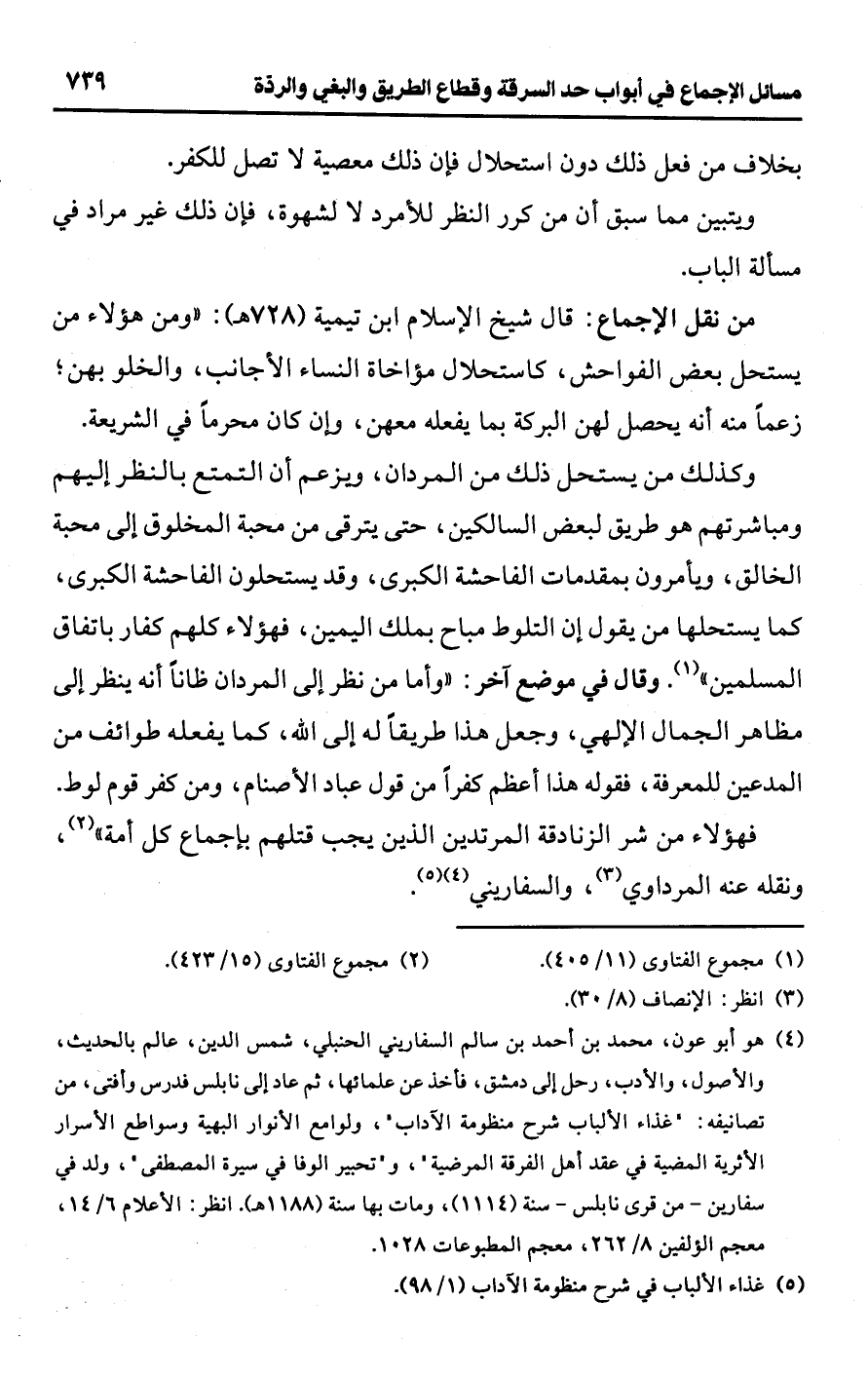 • من نقل الإجماع: قال شيخ الإسلام ابن تيمية (728 هـ): "ومن هؤلاء من يستحل بعض الفواحش، كاستحلال مؤاخاة النساء الأجانب، والخلو بهن؛ زعمًا منه أنه يحصل لهن البركة بما يفعله معهن، وإن كان محرمًا في الشريعة.