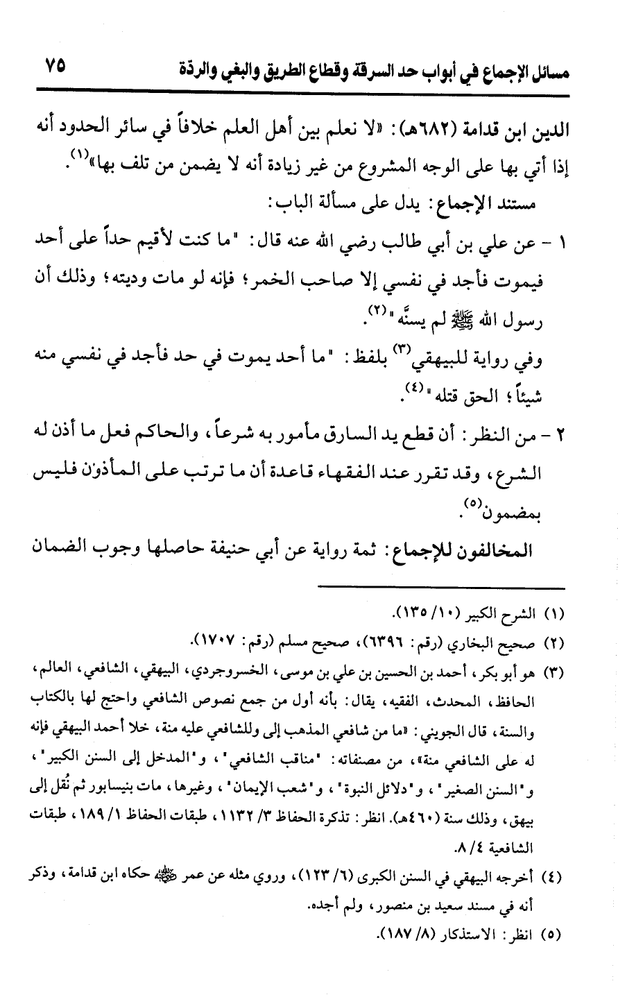 الدين ابن قدامة (682 هـ): "لا نعلم بين أهل العلم خلافًا في سائر الحدود أنه إذا أتي بها على الوجه المشروع من غير زيادة أنه لا يضمن من تلف بها" (¬1).