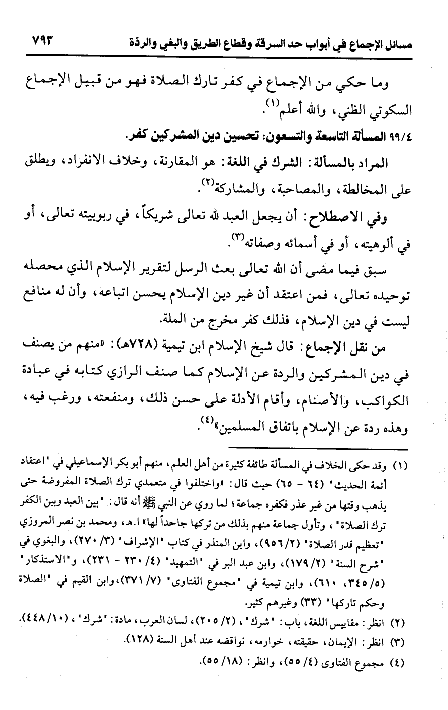 [99/ 4] المسألة التاسعة والتسعون: تحسين دين المشركين كفر.