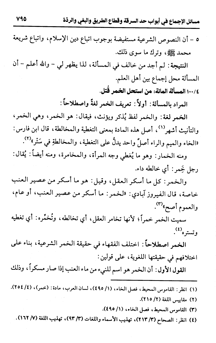 [100/ 4] المسألة المائة: من استحل الخمر قُتل.