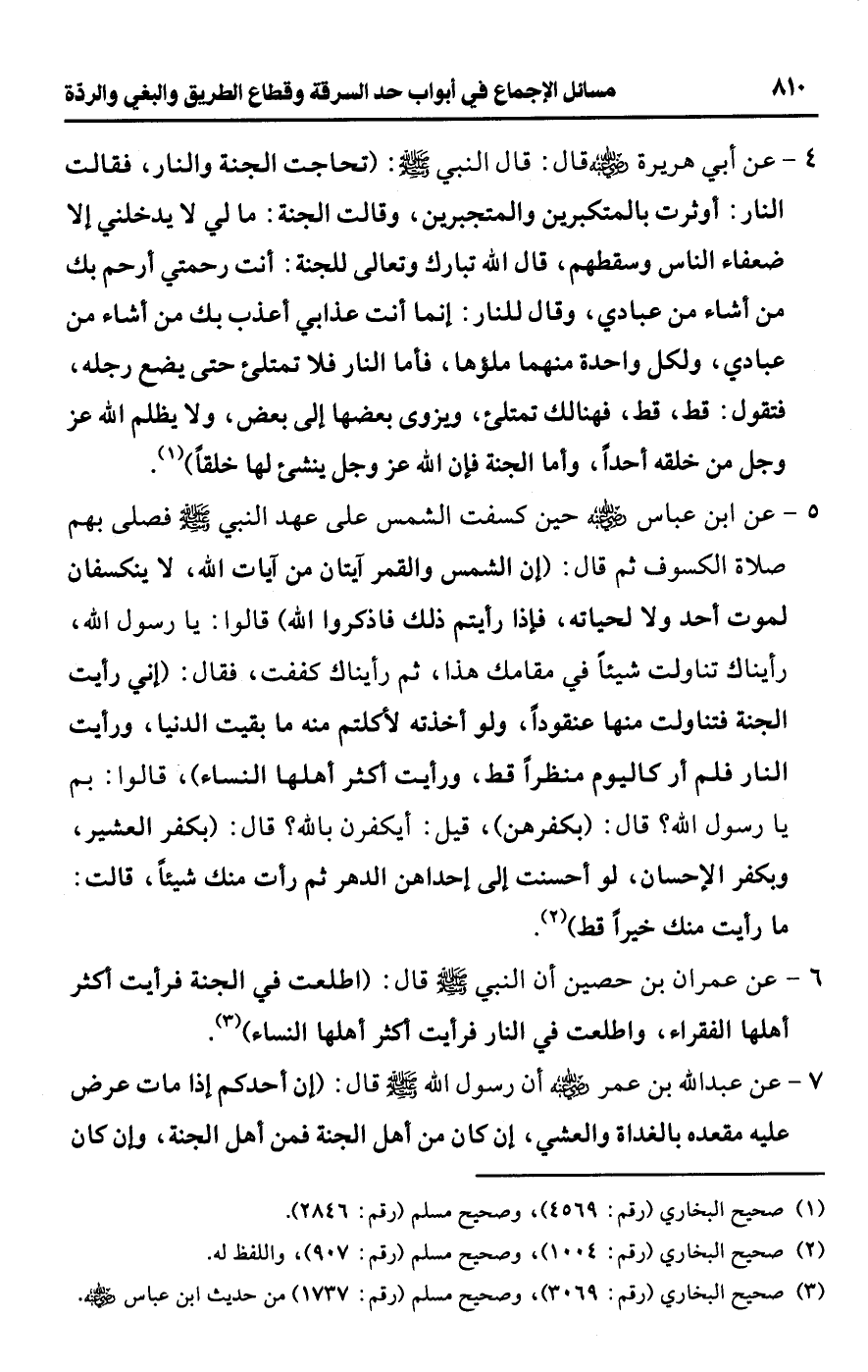 6 - عن عمران بن حصين أن النبي -صلى اللَّه عليه وسلم- قال: (اطلعت في الجنة فرأيت أكثر أهلها الفقراء، واطلعت في النار فرأيت أكثر أهلها النساء) (¬3).