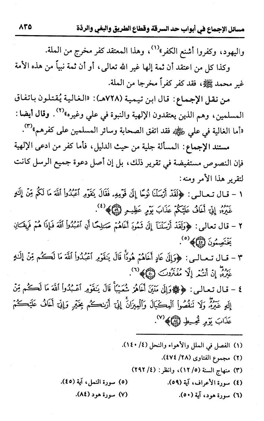 • من نقل الإجماع: قال ابن تيمية (728 هـ): "الغالية يُقتلون باتفاق المسلمين، وهم الذين يعتقدون الإلهية والنبوة في علي وغيره" (¬2). وقال أيضا: "أما الغالية في علي -رضي اللَّه عنه- فقد اتفق الصحابة وسائر المسلمين على كفرهم" (¬3).