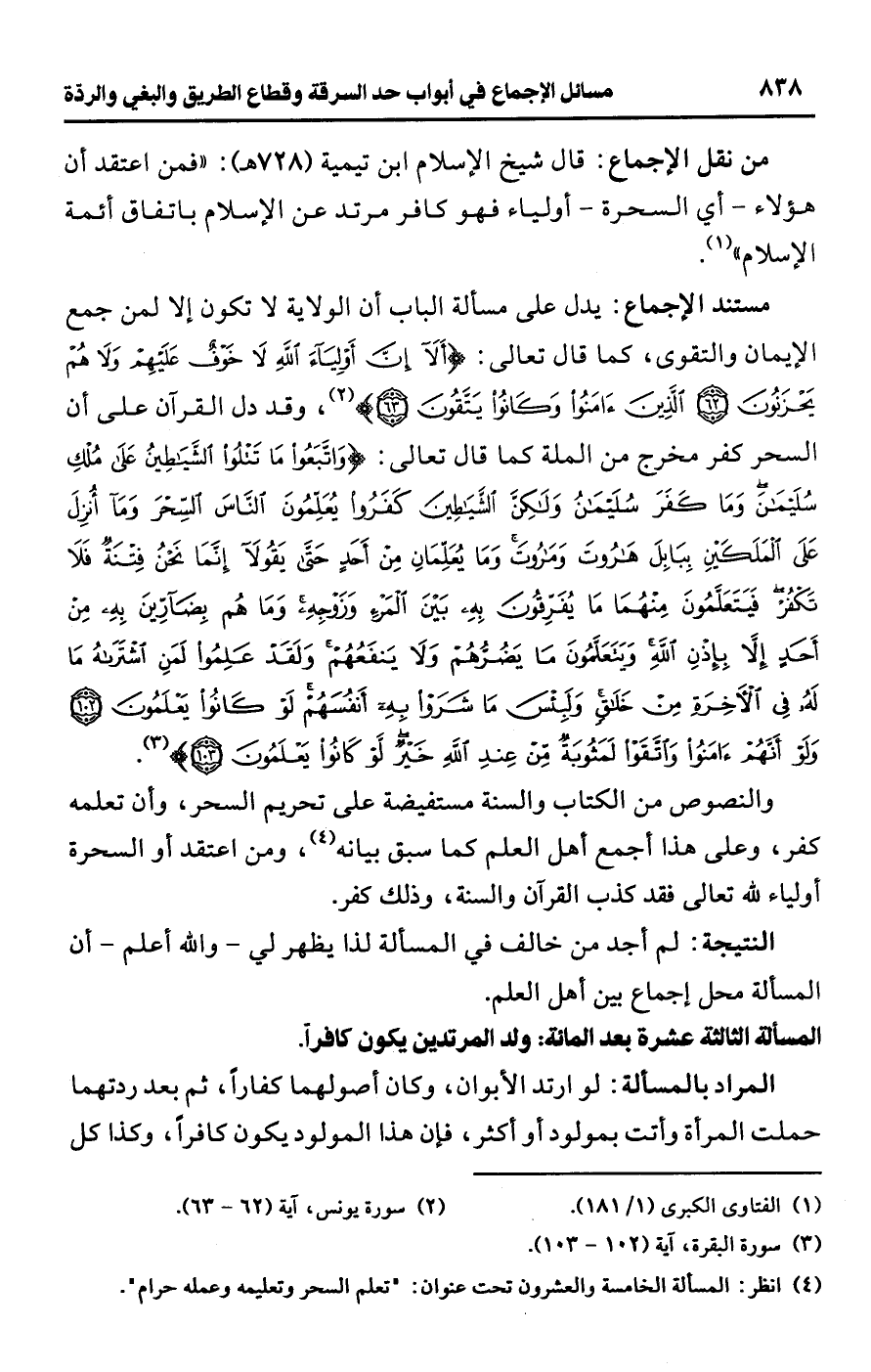 (¬4) انظر: المسألة الخامسة والعشرون تحت عنوان: "تعليم السحر وتعليمه وعمله حرام".