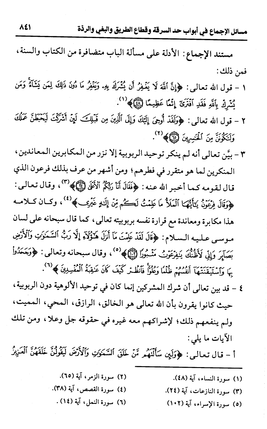 1 - قول اللَّه تعالى: {إِنَّ اللَّهَ لَا يَغْفِرُ أَنْ يُشْرَكَ بِهِ وَيَغْفِرُ مَا دُونَ ذَلِكَ لِمَنْ يَشَاءُ وَمَنْ يُشْرِكْ بِاللَّهِ فَقَدِ افْتَرَى إِثْمًا عَظِيمًا (48)} (¬1).