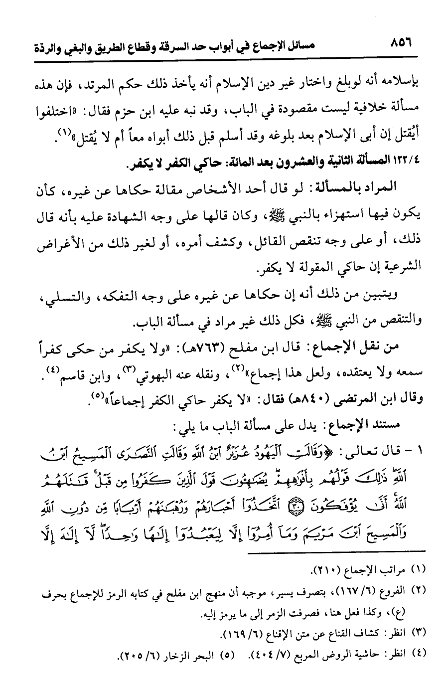 (¬2) الفروع (6/ 167)، بتصرف يسير، موجبه أن منهج ابن مفلح في كتابه الرمز للإجماع بحرف (ع)، وكذا فعل ها، فصرفت الزمر إلى ما يرمز إليه.