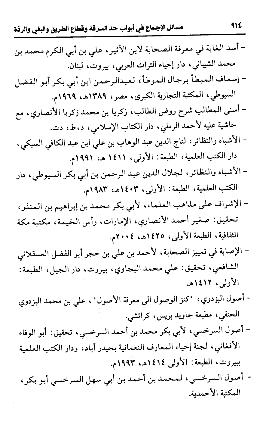 - الأشباه والنظائر، لتاج الدين عبد الوهاب بن علي ابن عبد الكافي السبكي، دار الكتب العلمية، الطبعة: الأولى، 1411 هـ، 1991 م.