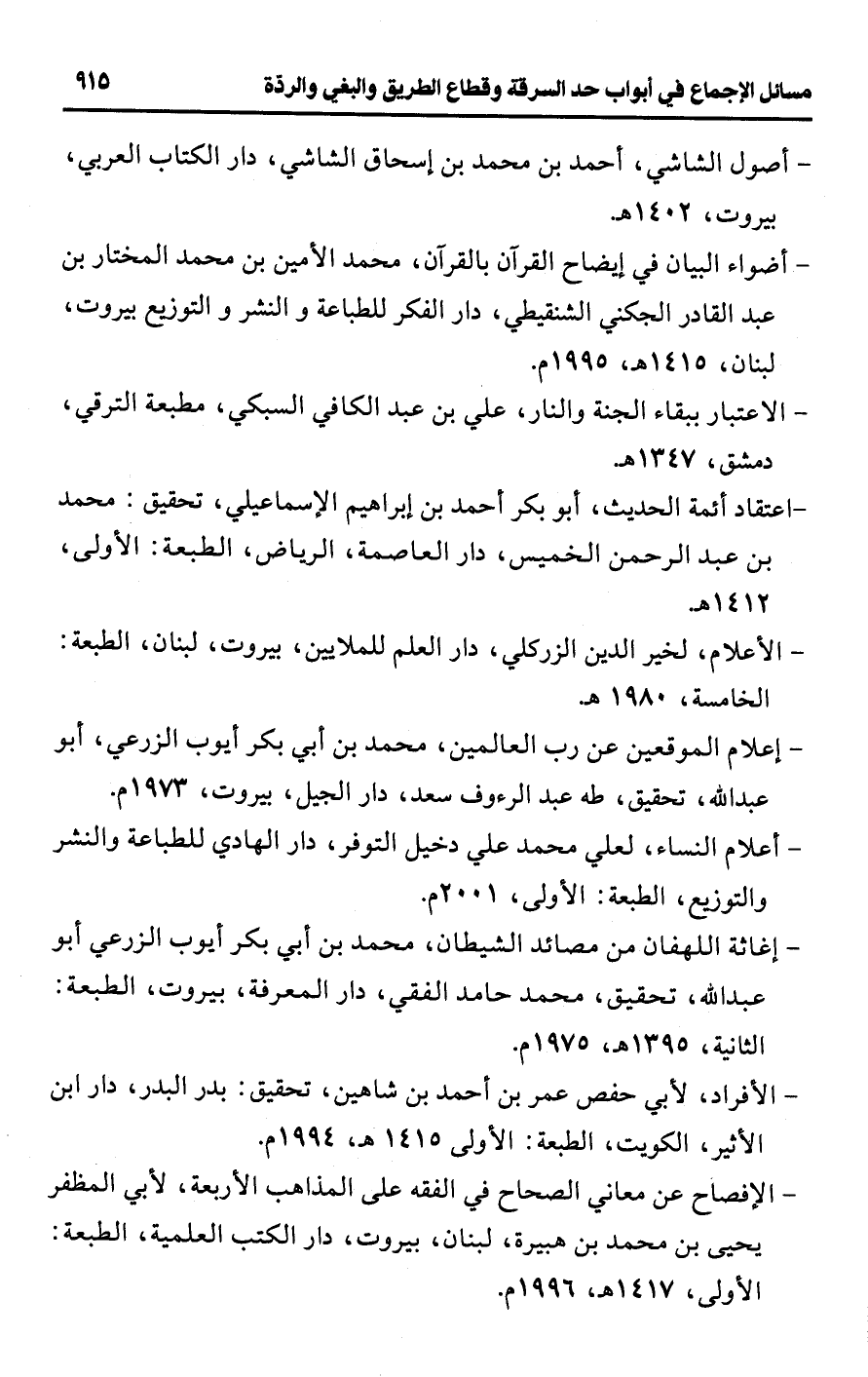 - الإفصاح عن معاني الصحاح في الفقه على المذاهب الأربعة، لأبي المظفر يحيى بن محمد بن هبيرة، لبنان، بيروت، دار الكتب العلمية، الطبعة: الأولى، 1417 هـ، 1996 م.