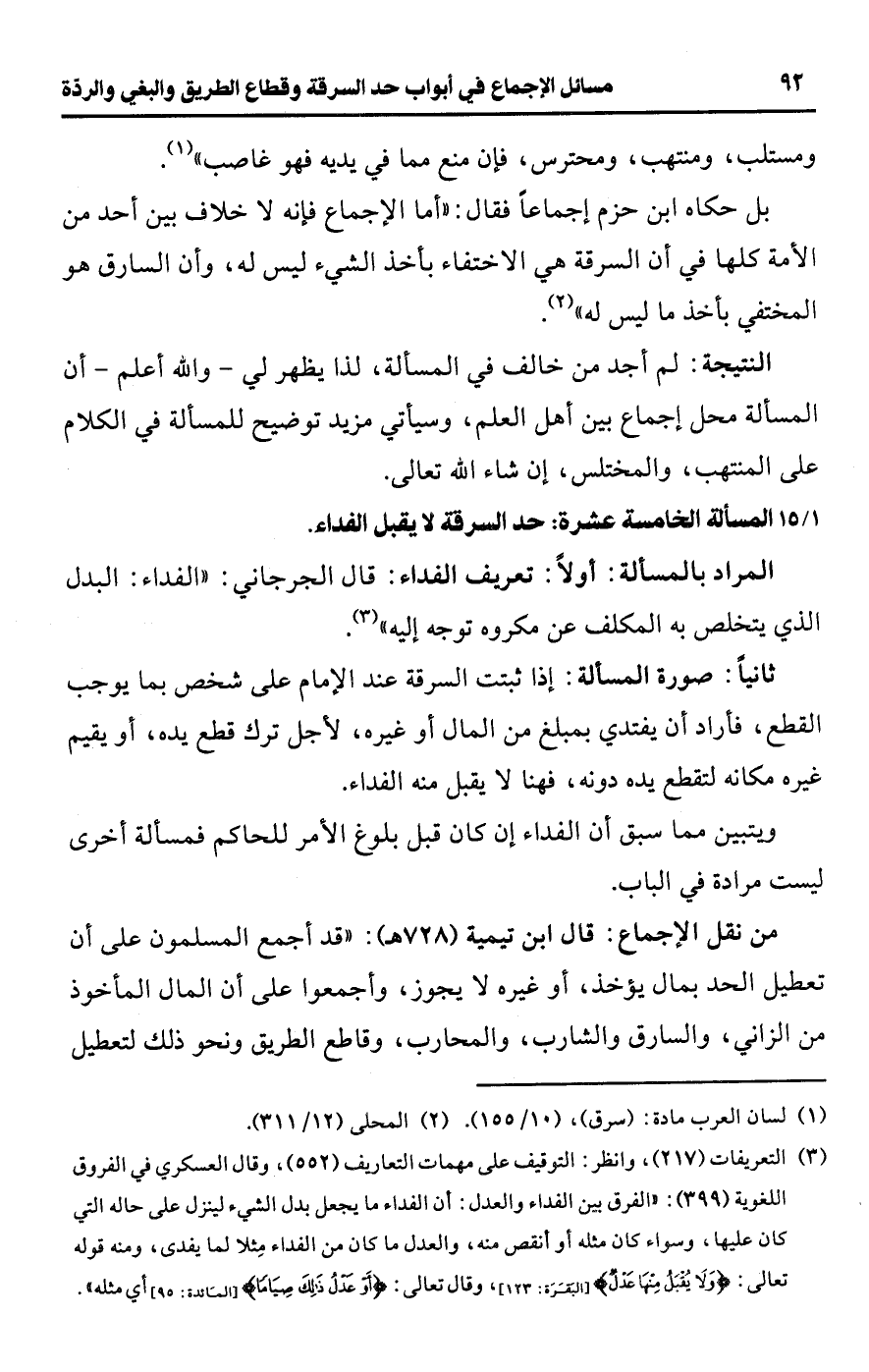 [15/ 1] المسألة الخامسة عشرة: حد السرقة لا يقبل الفداء.