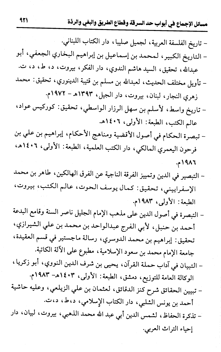 - التبصير في الدين وتمييز الفرقة الناجية عن الفرق الهالكين، طاهر بن محمد الإسفراييني، تحقيق: كمال يوسف الحوت، عالم الكتب، بيروت، الطبعة: الأولى، 1983 م.