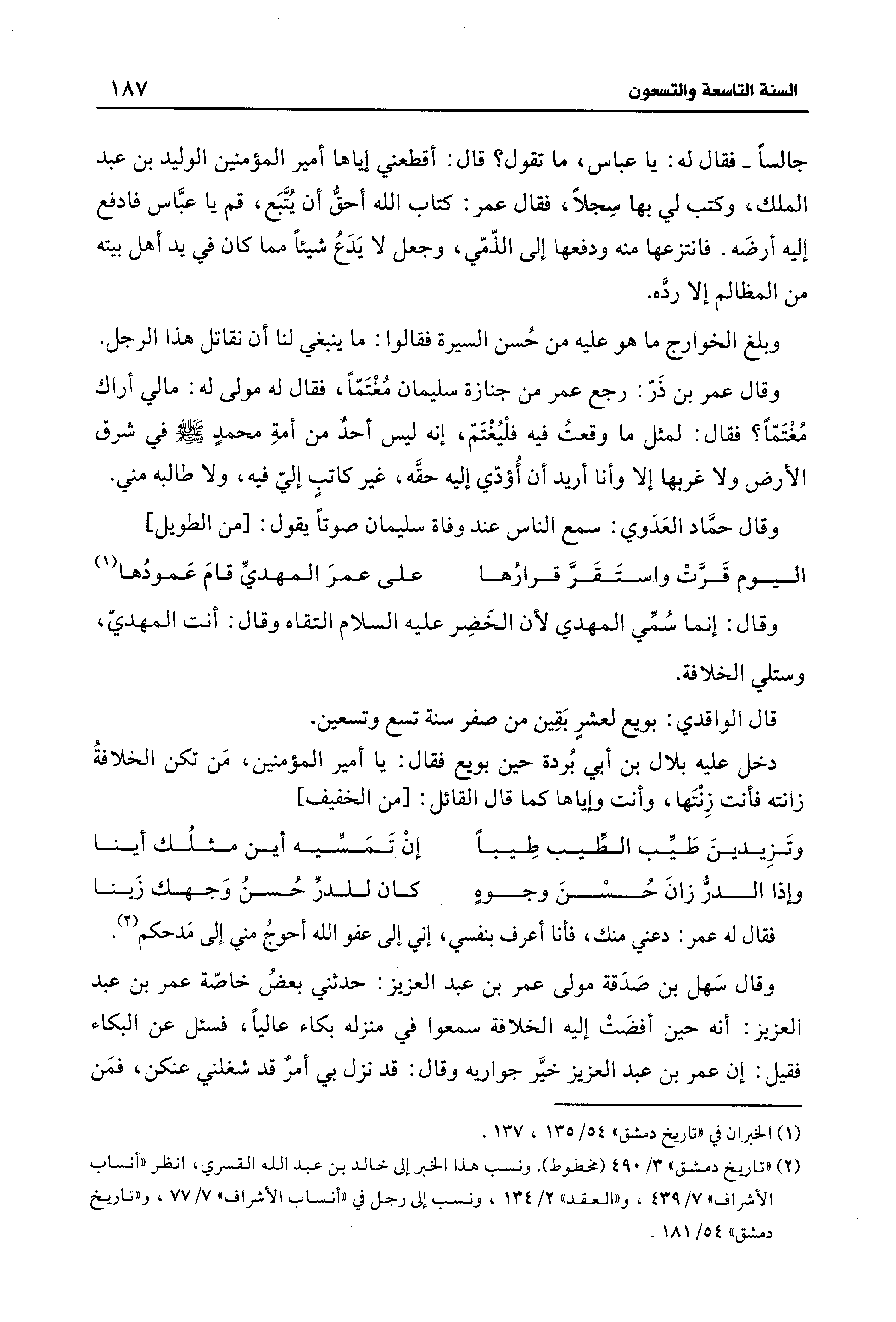 (¬2) "تاريخ دمشق" 3/ 490 (مخطوط). ونسب هذا الخبر إلى خالد بن عبد الله القسري، انظر "أنساب الأشراف" 7/ 439، و"العقد" 2/ 134، ونسب إلى رجل في "أنساب الأشراف" 7/ 77، و"تاريخ دمشق" 54/ 181.