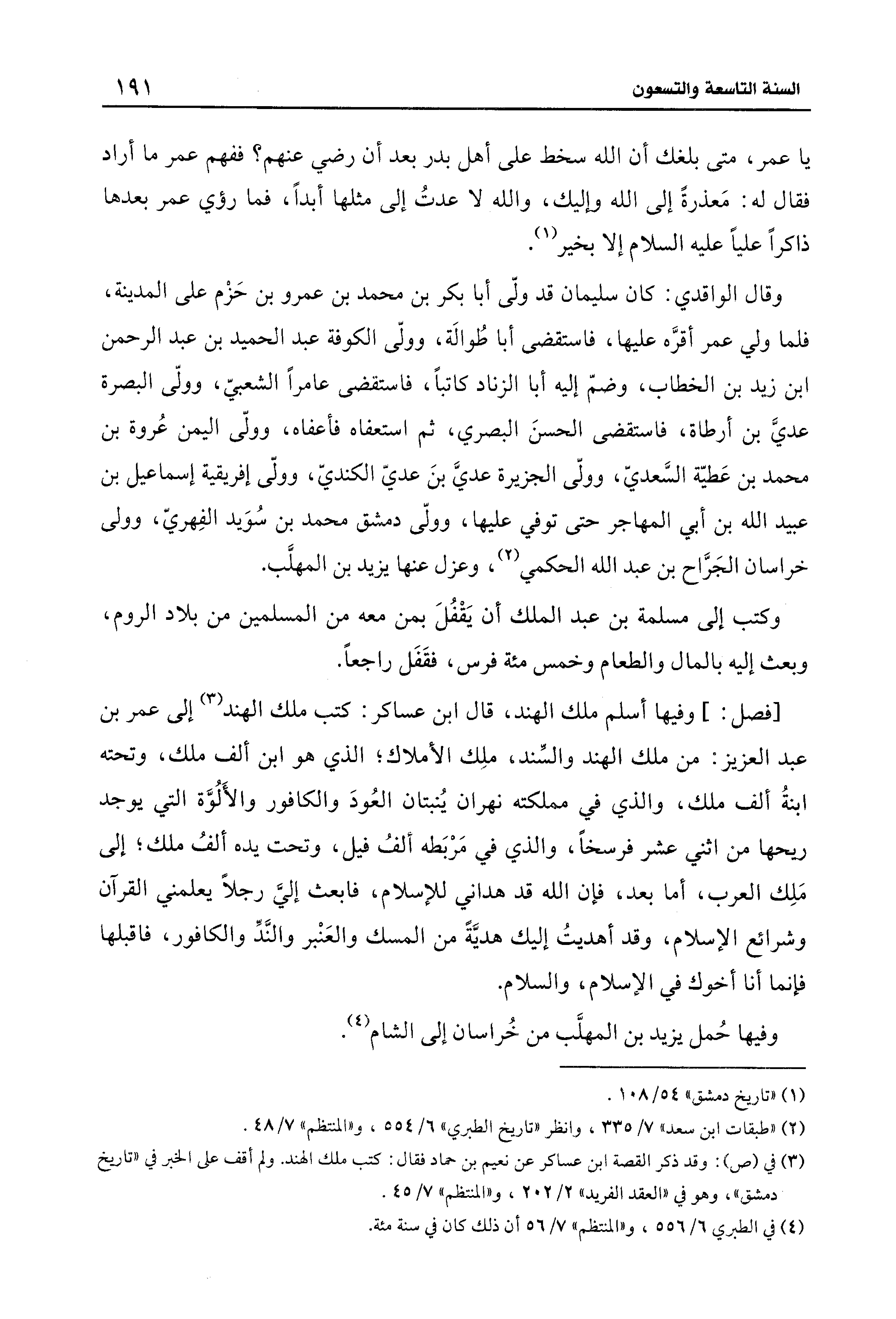 (¬3) في (ص): وقد ذكر القصة ابن عساكر عن نعيم بن حماد فقال: كتب ملك الهند. ولم أقف على الخبر في "تاريخ دمشق"، وهو في "العقد الفريد" 2/ 202، و"المنتظم" 7/ 45.