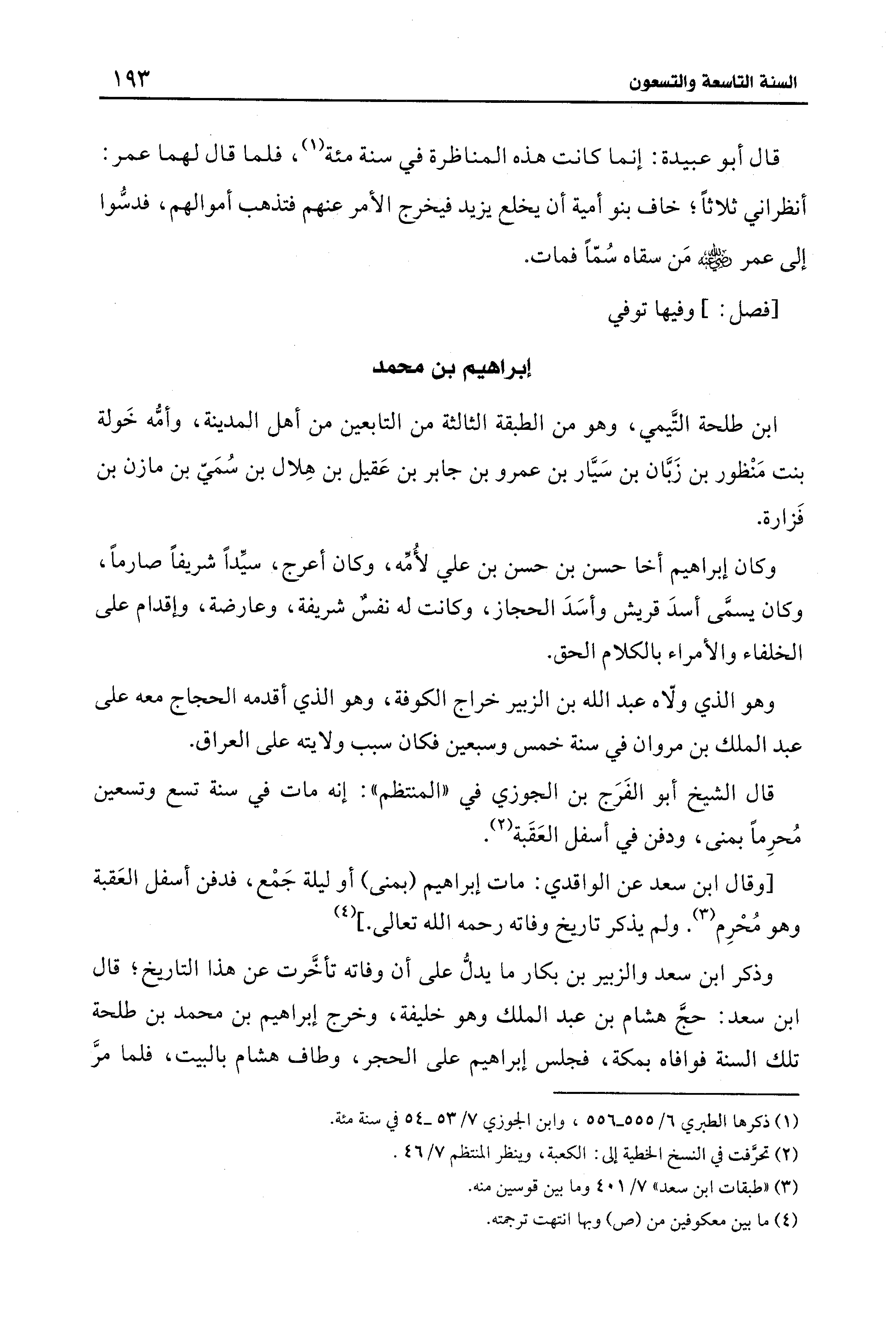 [وقال ابن سعد عن الواقدي: مات إبراهيم (بمنى) أو ليلة جَمْع، فدفن أسفل العَقبة وهو مُحْرِم (¬3). ولم يذكر تاريخ وفاته رحمه الله تعالى.] (¬4)