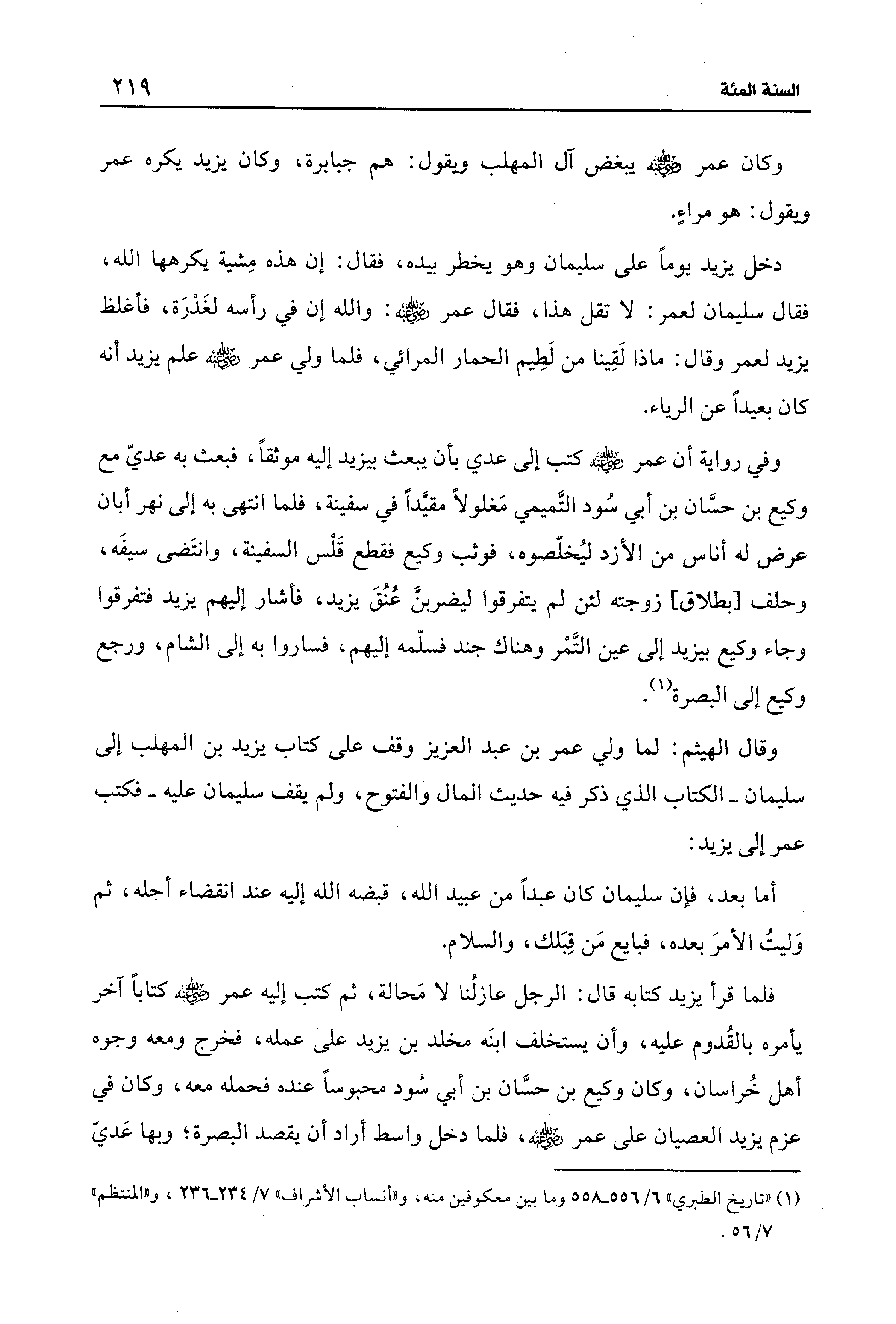 وكان عمر - رضي الله عنه - يبغض آل المهلب ويقول: هم جبابرة، وكان يزيد يكره عمر ويقول: هو مراءٍ.