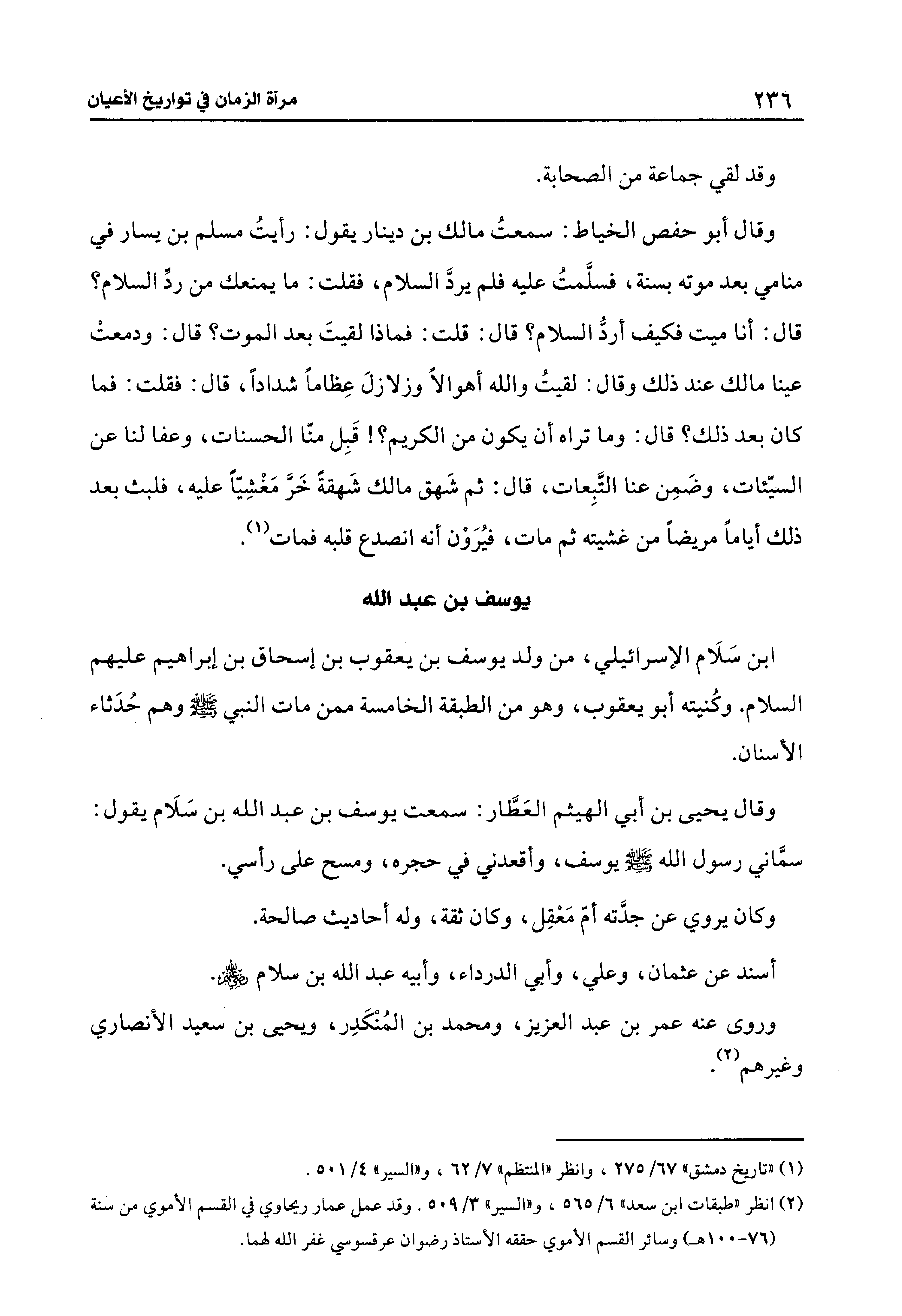 (¬2) انظر "طبقات ابن سعد" 6/ 565، و "السير" 3/ 509. وقد عمل عمار ريحاوي في القسم الأموي من سنة (76 - 100 هـ) وسائر القسم الأموي حققه الأستاذ رضوان عرقسوسي غفر الله لهما.