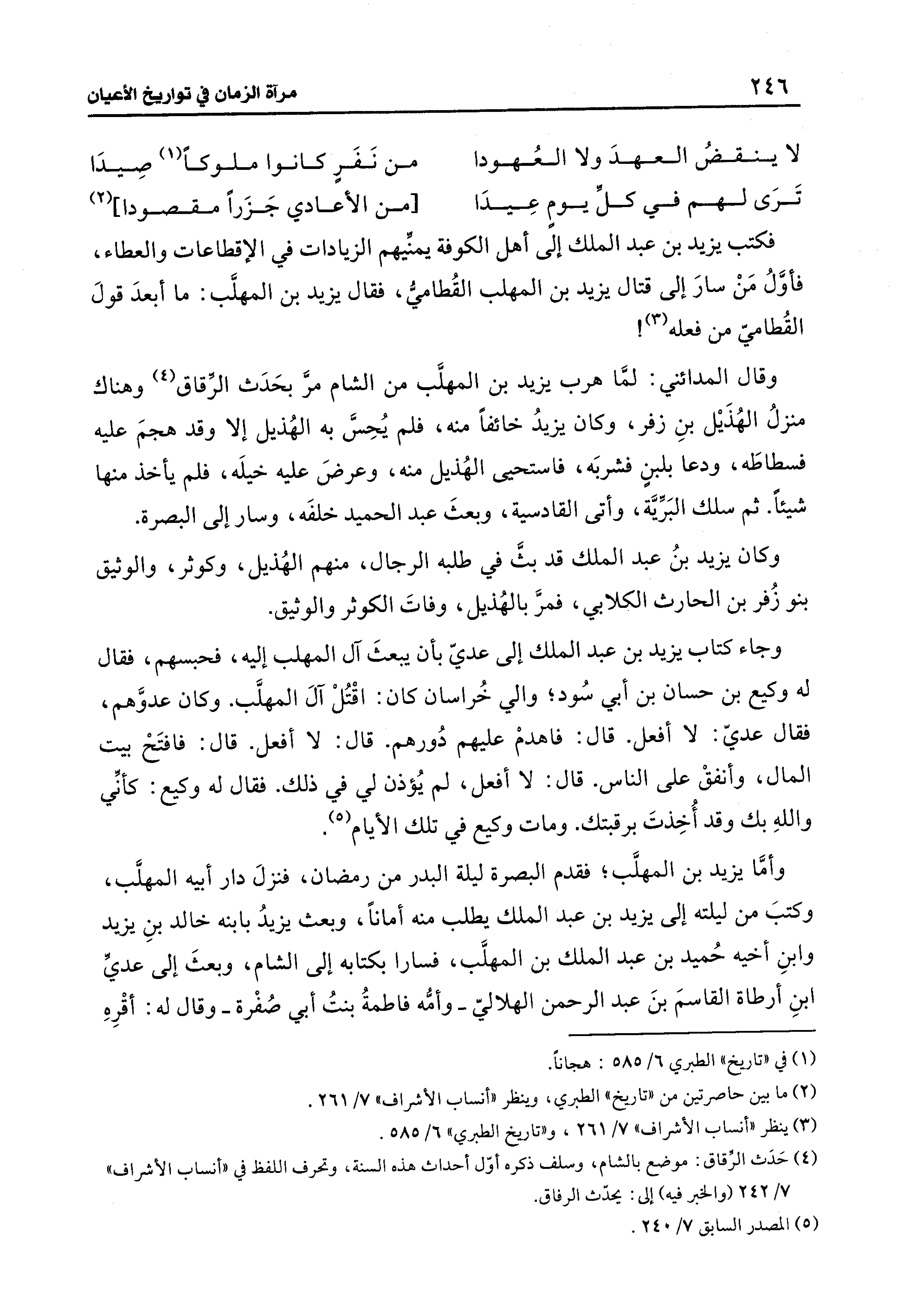وقال المدائني: لمَّا هرب يزيد بن المهلَّب من الشام مرَّ بحَدَث الرِّقاق (¬4) وهناك منزلُ الهُذَيل بنِ زفر، وكان يزيدُ خائفًا منه، فلم يُحِسَّ به الهُذيل إلَّا وقد هجمَ عليه فسطاطَه، ودعا بلبنٍ فشربَه، فاستحيى الهُذيل منه، وعرضَ عليه خيلَه، فلم يأخذ منها شيئًا. ثم سلك البَرِّيَّة، وأتى القادسية، وبعثَ عبد الحميد خلفَه، وسار إلى البصرة.