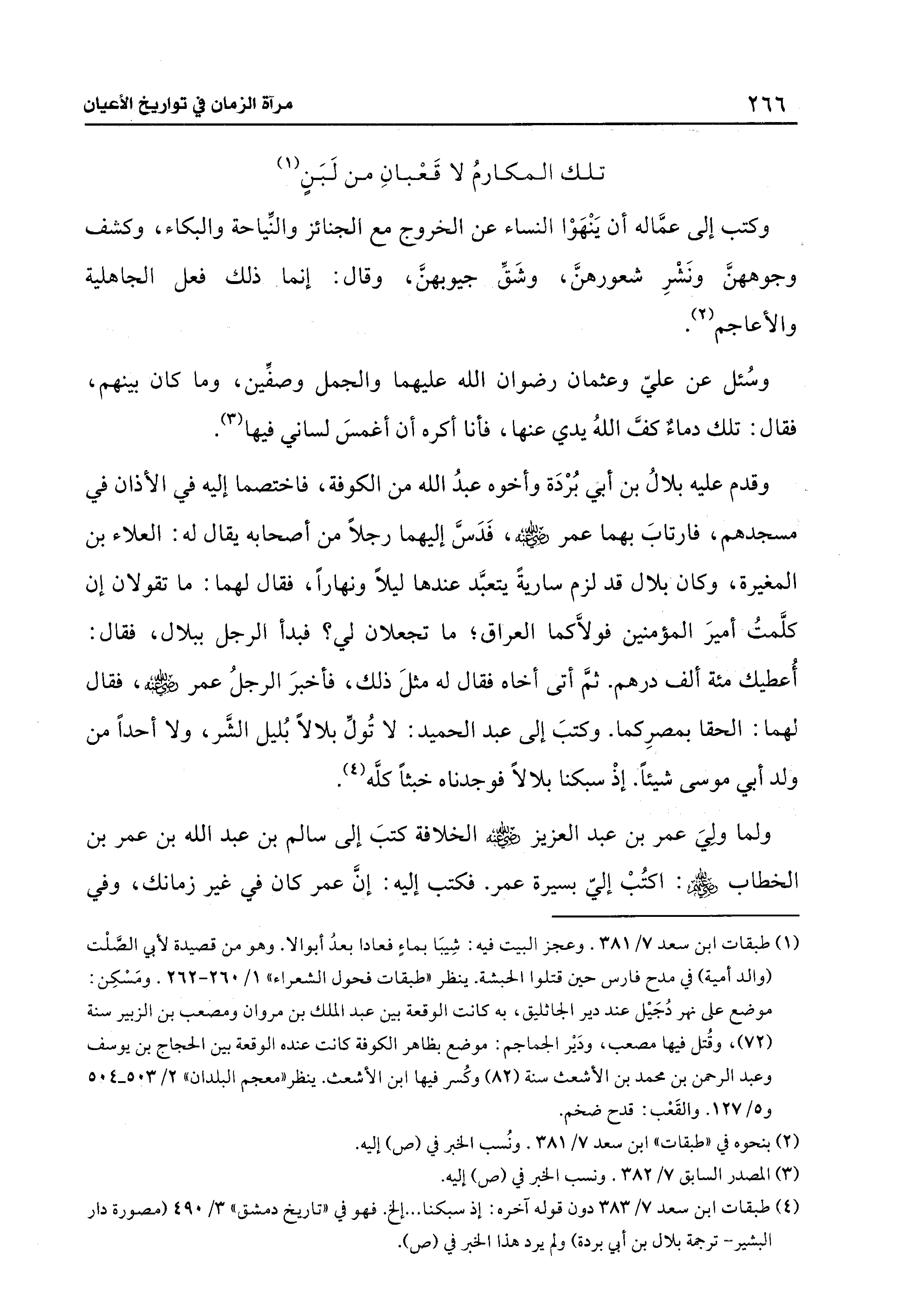 (¬4) طبقات ابن سعد 7/ 383 دون قوله آخره: إذ سبكنا ... إلخ. فهو في "تاريخ دمشق" 3/ 490) مصورة دار البشير- ترجمة بلال بن أبي بردة) ولم يرد هذا الخبر في (ص).