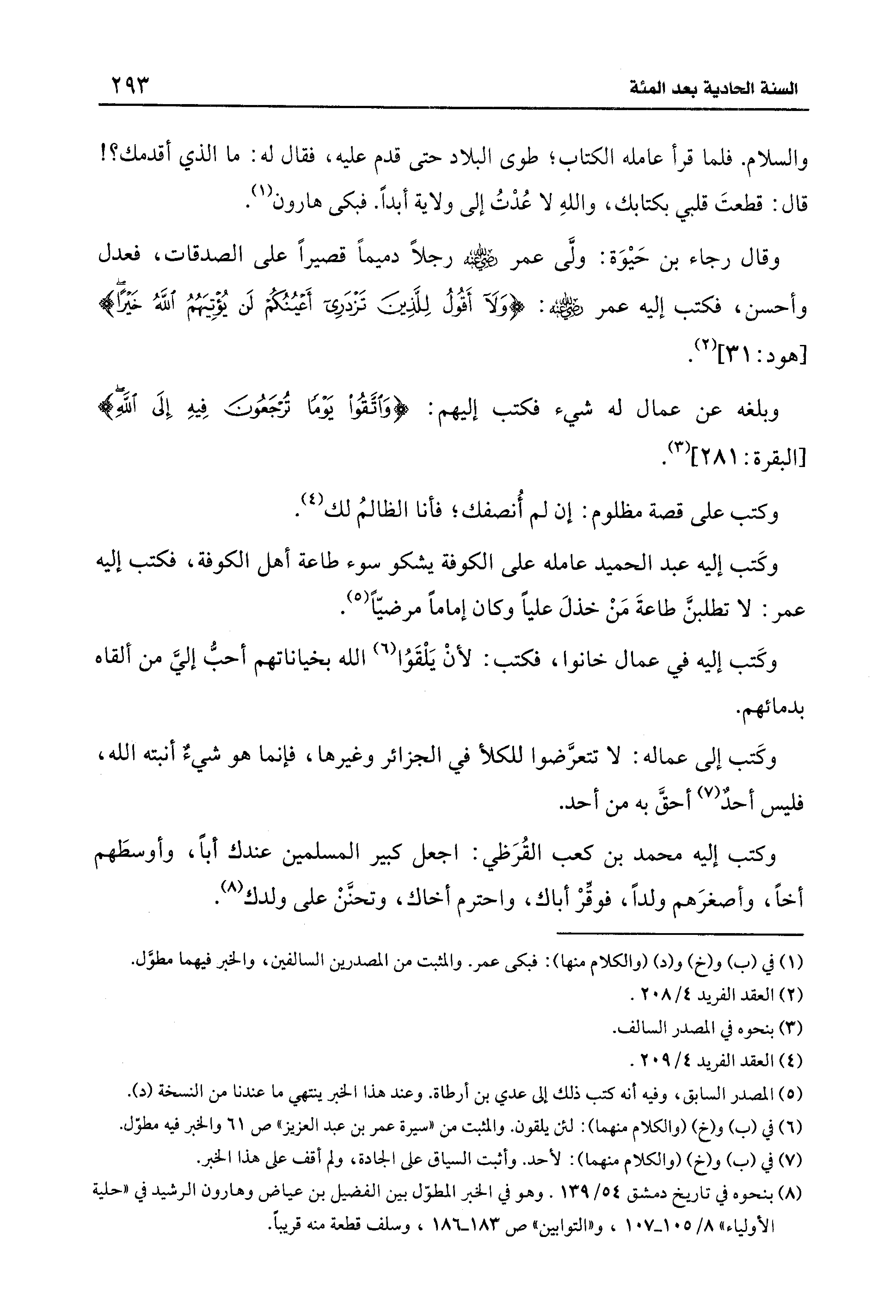 (¬5) المصدر السابق، وفيه أنَّه كتب ذلك إلى عدي بن أرطاة. وعند هذا الخبر ينتهي ما عندنا من النسخة (د).
