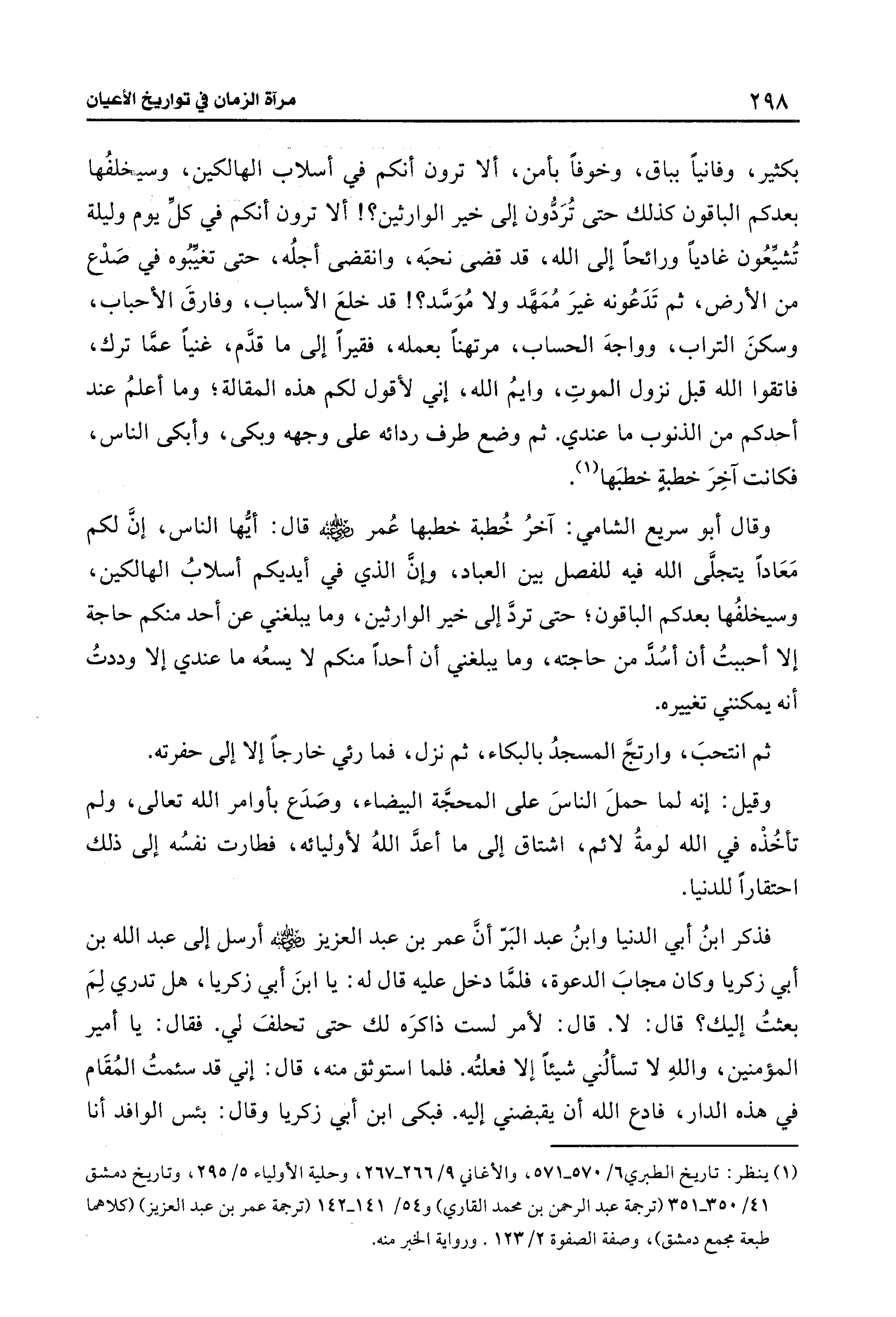 (¬1) ينظر: تاريخ الطبري 6/ 570 - 571، والأغاني 9/ 266 - 267، وحلية الأولياء 5/ 295، وتاريخ دمشق 41/ 350 - 351 (ترجمة عبد الرحمن بن محمد القاري) و 54/ 141 - 142 (ترجمة عمر بن عبد العزيز) (كلاهما طبعة مجمع دمشق)، وصفة الصفوة 2/ 123. ورواية الخبر منه.