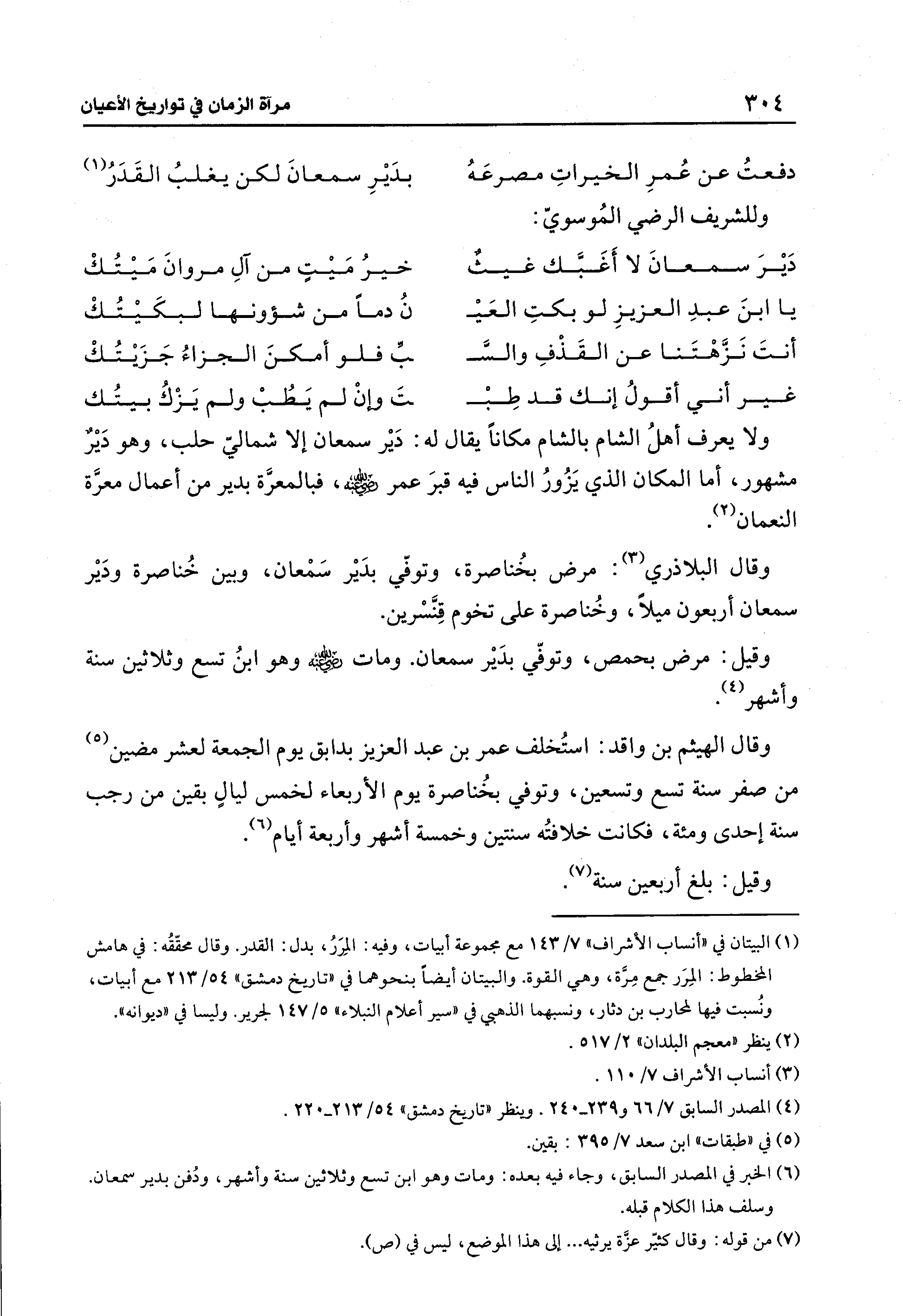 دفعتُ عن عُمرِ الخيراتِ مصرعَهُ ... بدَيرِ سمعانَ لكن يغلبُ القَدَرُ (¬1)
