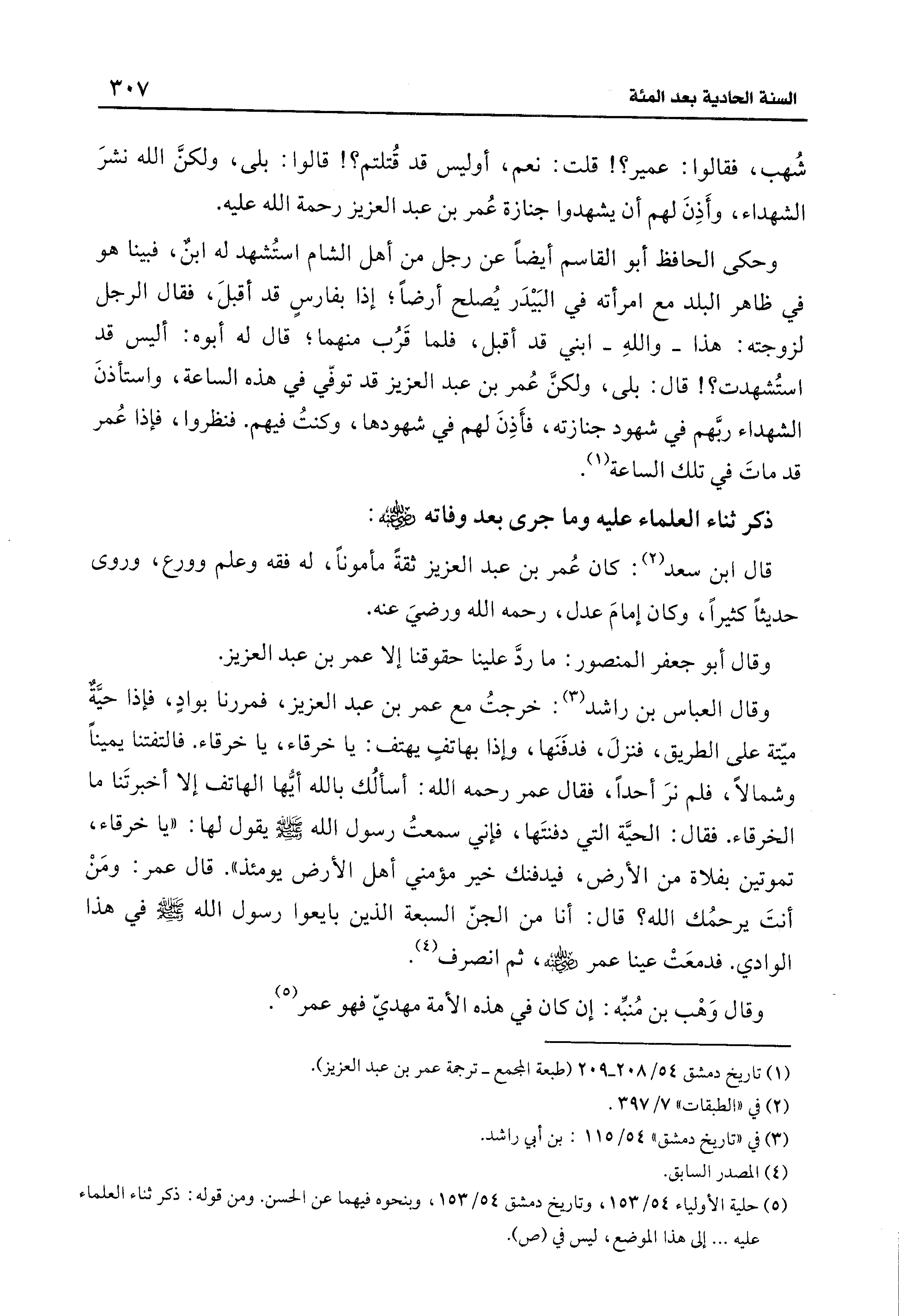 (¬1) تاريخ دمشق 54/ 208 - 209 (طبعة المجمع- ترجمة عمر بن عبد العزيز).