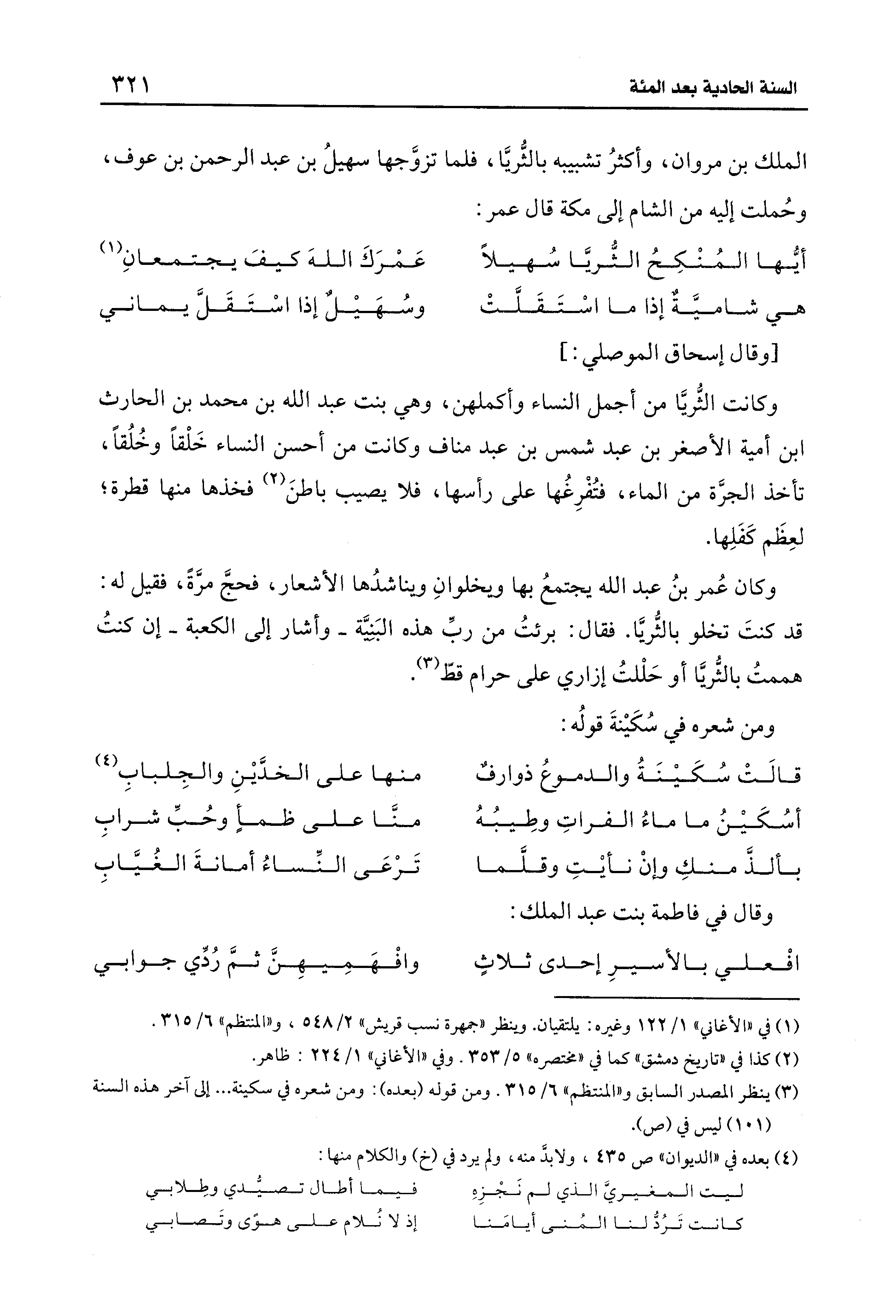 (¬3) ينظر المصدر السابق و"المنتظم" 6/ 315. ومن قوله (بعده): ومن شعره في سكينة ... إلى آخر هذه السخة (101) ليس في (ص).