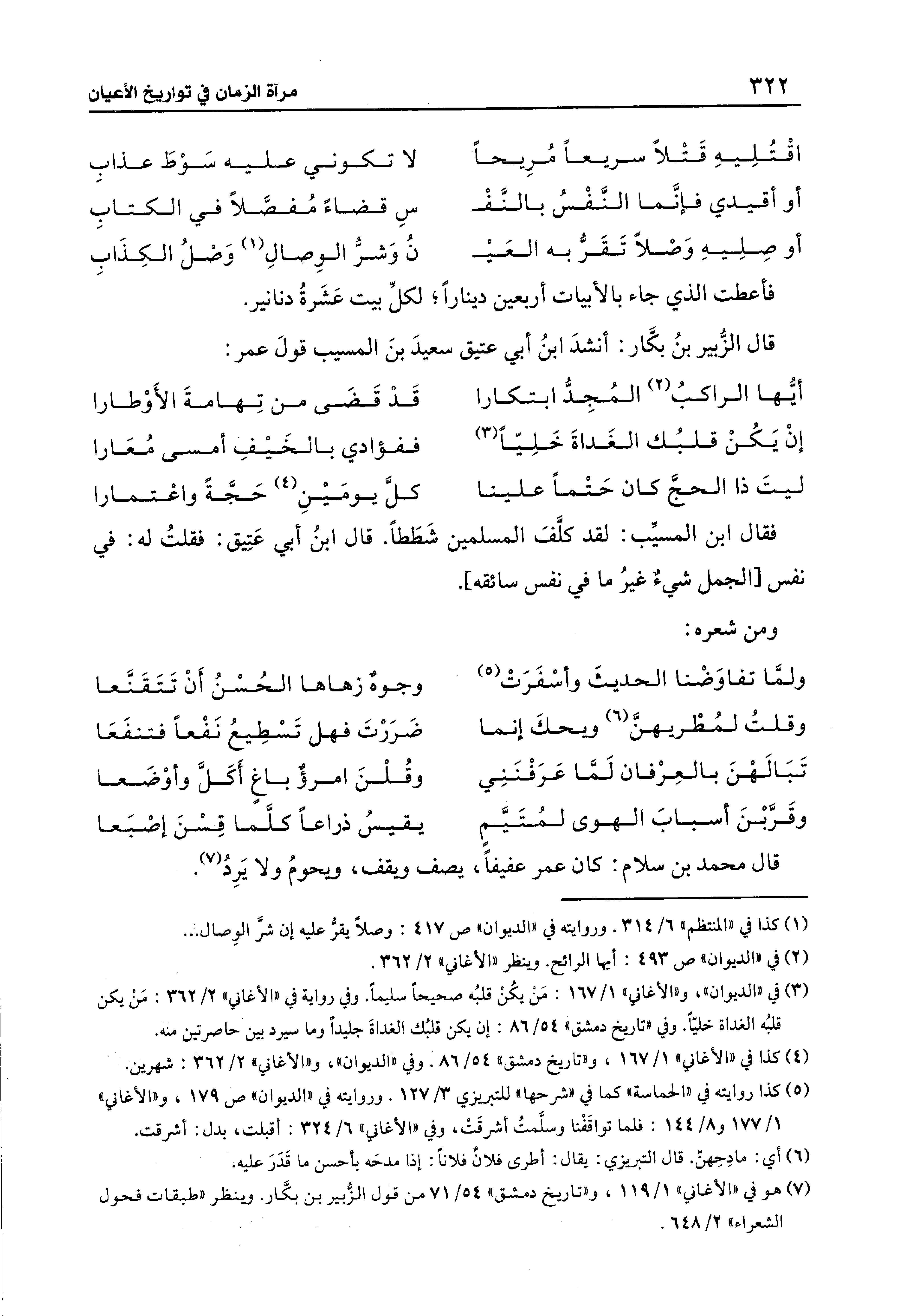 قال الزُّبير بنُ بكَّار: أنشدَ ابنُ أبي عتيق سعيدَ بنَ المسيّب قولَ عمر: