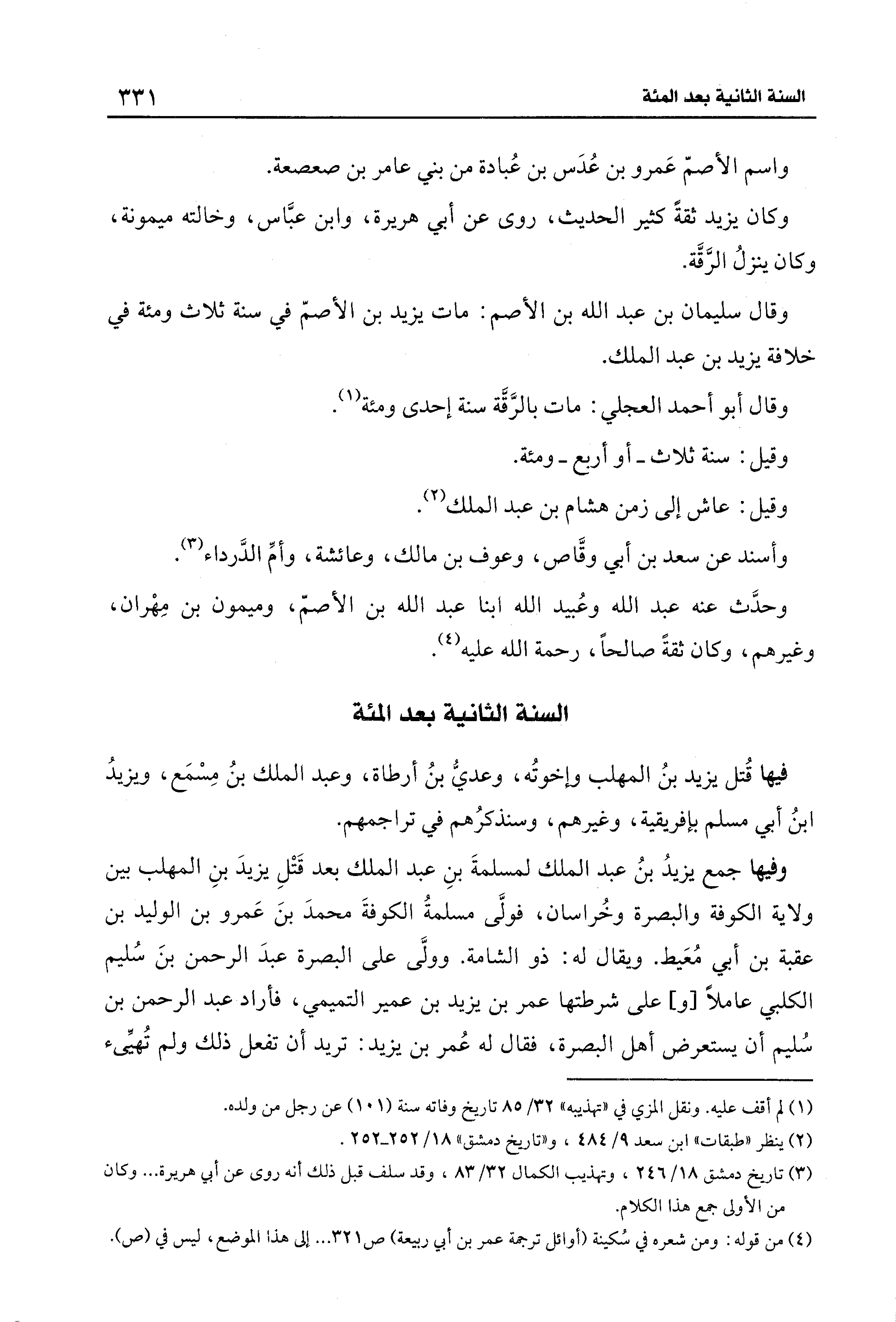 (¬2) ينظر "طبقات" ابن سعد 9/ 484، و"تاريخ دمشق" 18/ 252 - 252.