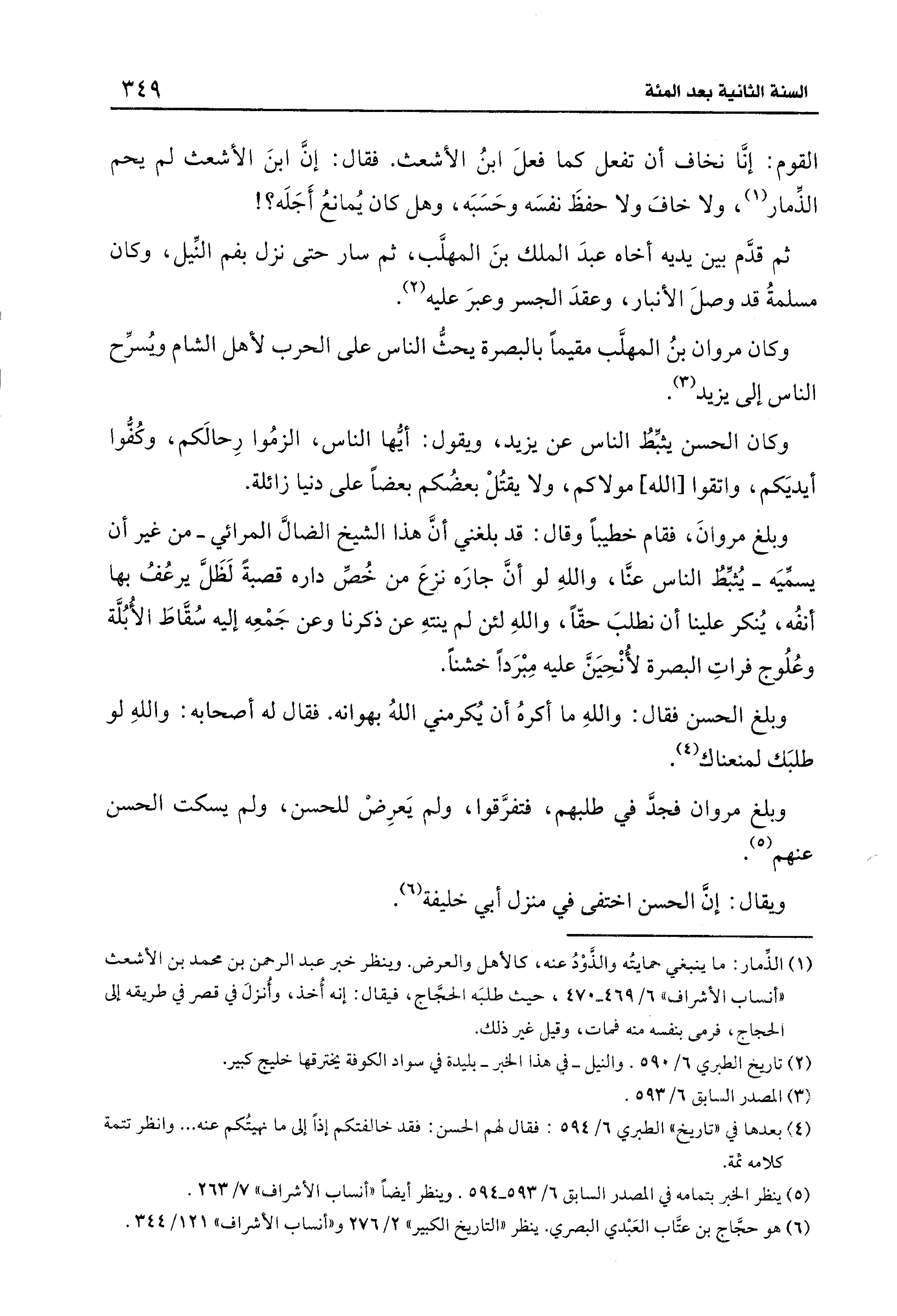 (¬4) بعدها في "تاريخ" الطبري 6/ 594: فقال لهم الحسن: فقد خالفتكم إذًا إلى ما نهيتُكم عنه ... وانظر تتمة كلامه ثمة.