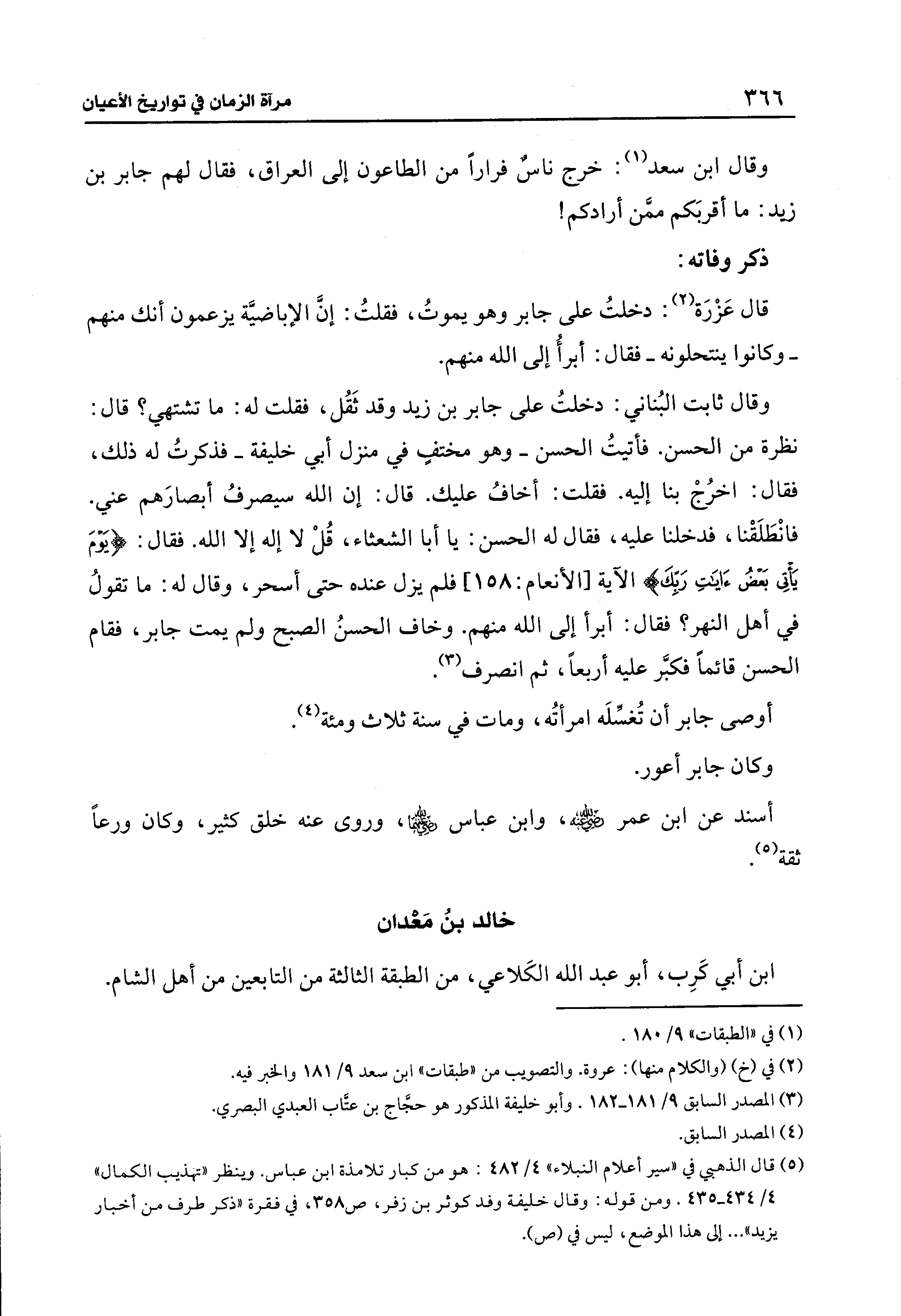 (¬5) قال الذهبي في "سير أعلام النبلاء" 4/ 482: هو من كبار تلامذة ابن عباس. وينظر "تهذيب الكمال" 4/ 435 - 434. ومن قوله: وقال خليفة وفد كوثر بن زفر، ص 358، في فقرة "ذكر طرف من أخبار يزيد" ... إلى هذا الموضع، ليس في (ص).
