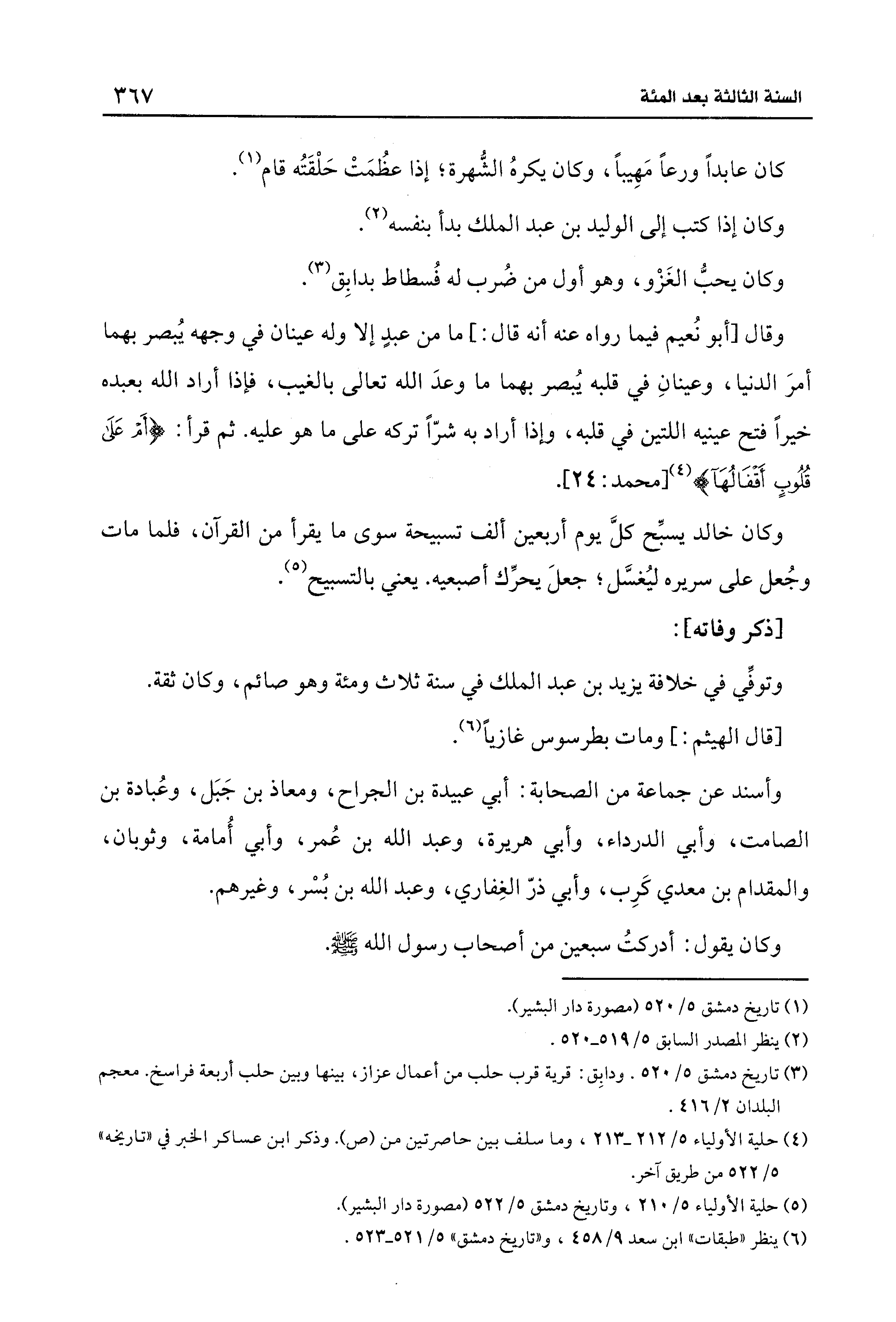 (¬6) ينظر "طبقات" ابن سعد 9/ 458، و"تاريخ دمشق" 5/ 521 - 523.