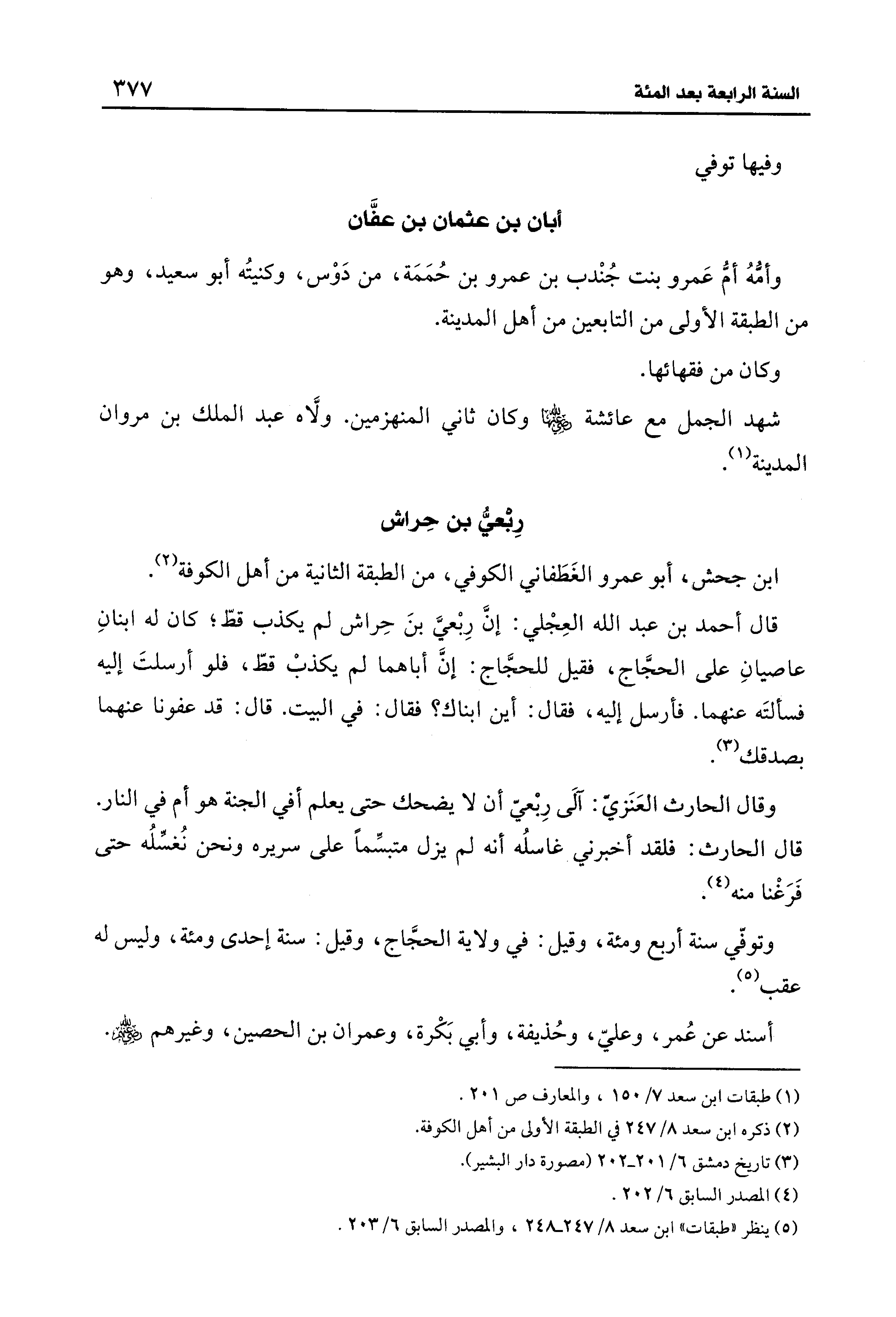 (¬5) ينظر "طبقات" ابن سعد 8/ 247 - 248، والمصدر السابق 6/ 203.