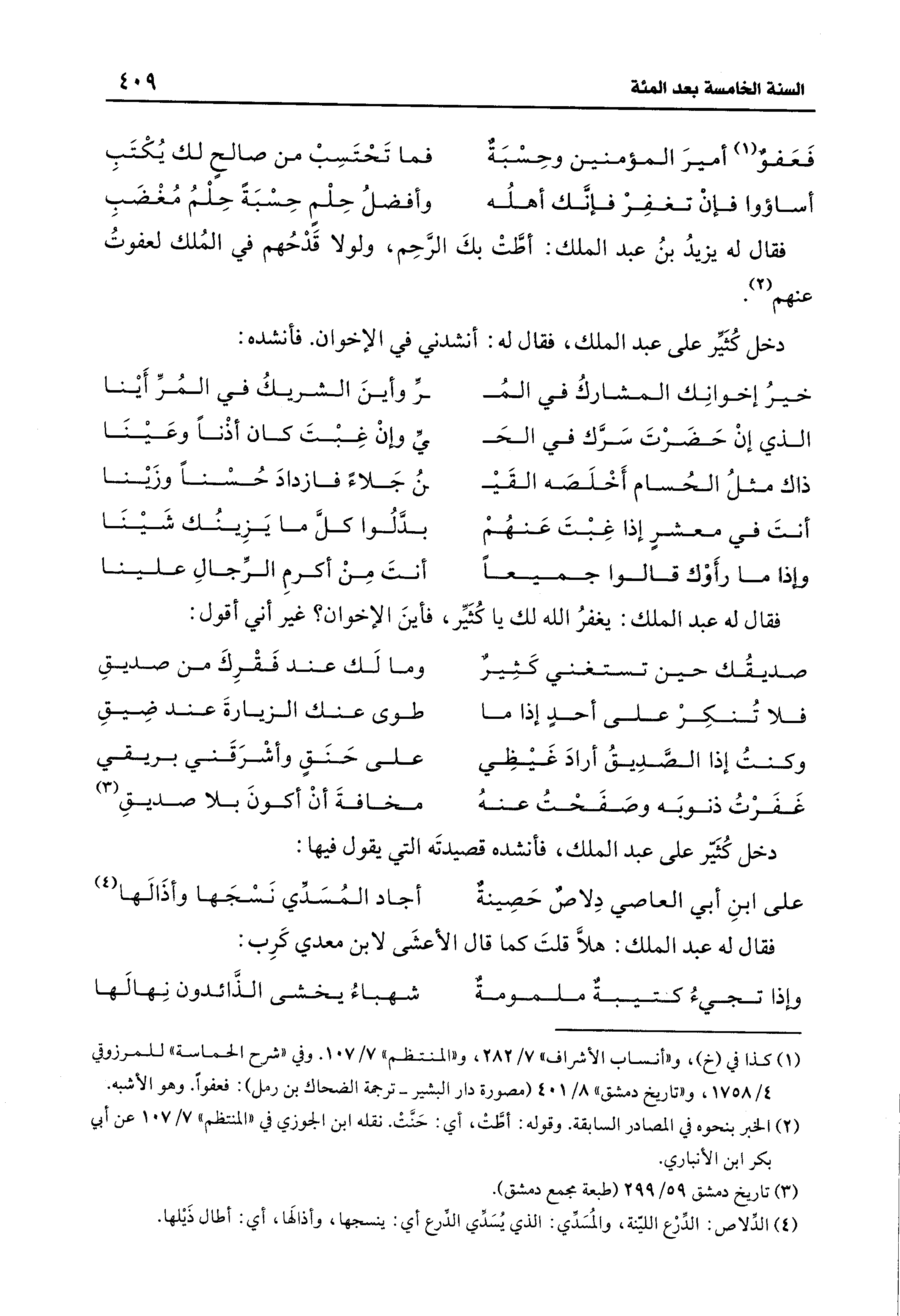 فقال له عبد الملك: يغفرُ الله لك يا كُثَيِّر، فأينَ الإخوان؟ غير أني أقول:
