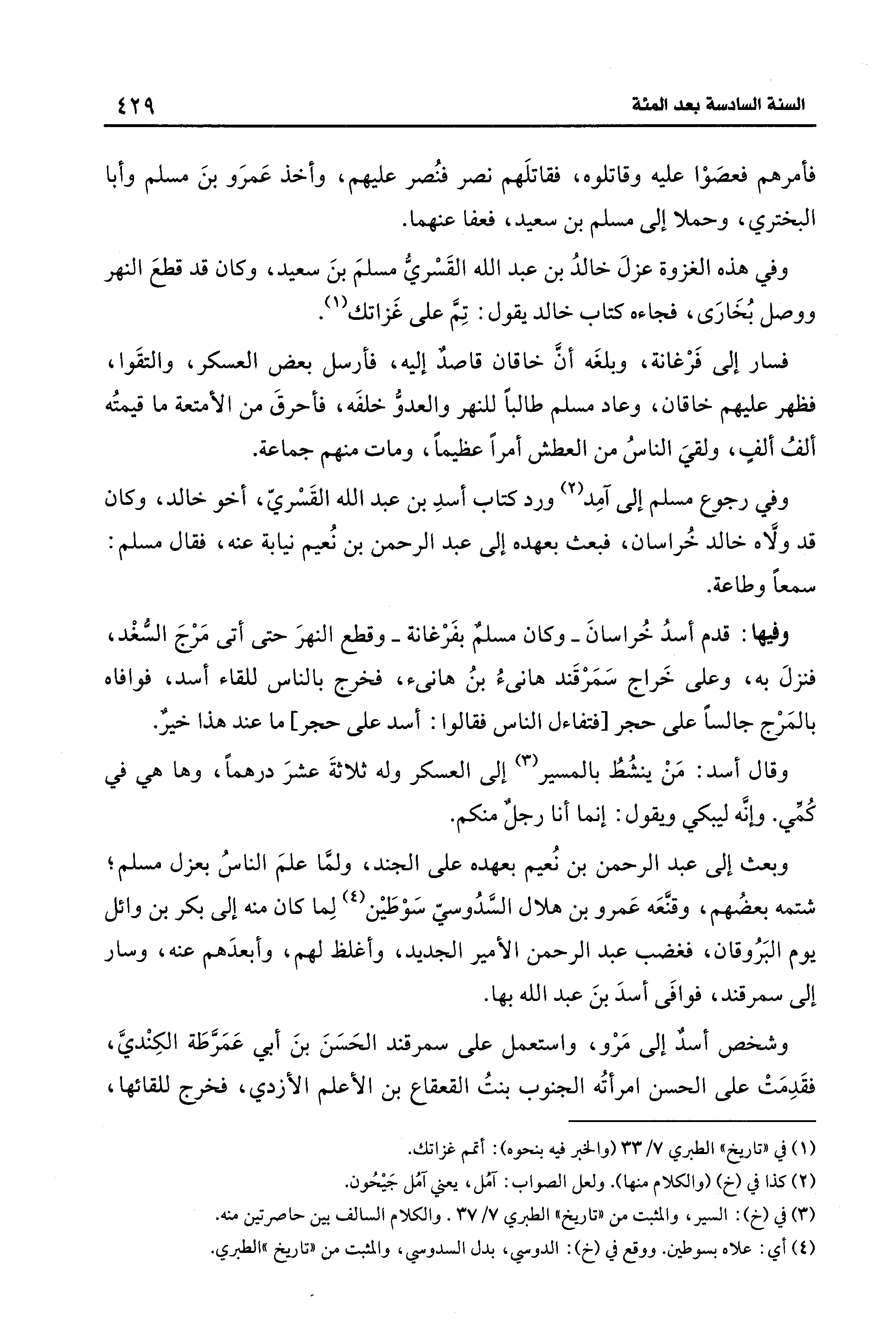 وفي هذه الغزوة عزلَ خالدُ بن عبد الله القَسْريُّ مسلمَ بنَ سعيد، وكان قد قطعَ النهر ووصل بُخَارَى، فجاءه كتاب خالد يقول: تِمَّ على غَزاتك (¬1).