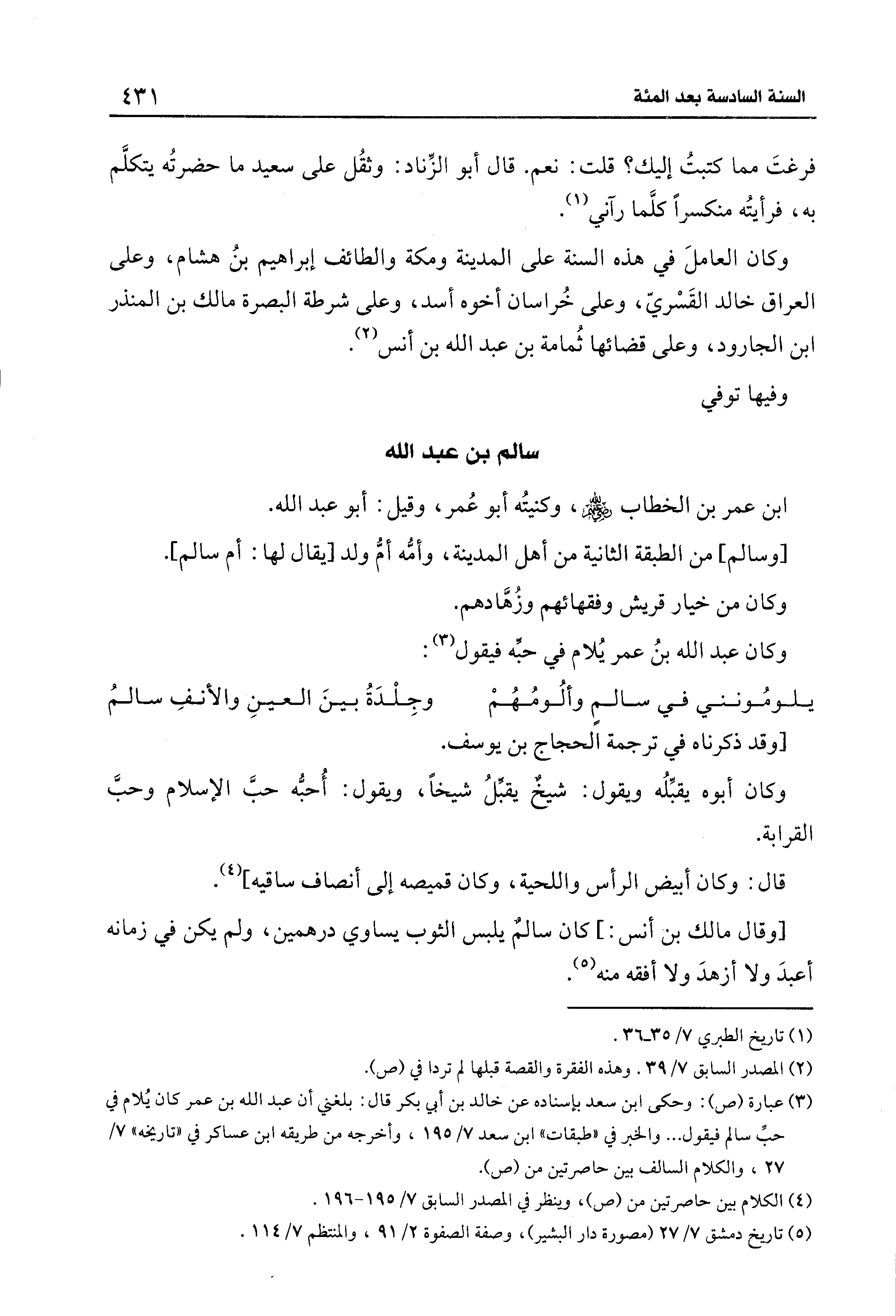 (¬5) تاريخ دمشق 7/ 27 (مصورة دار البشير)، وصفة الصفوة 2/ 91، والمنتظم 7/ 114.