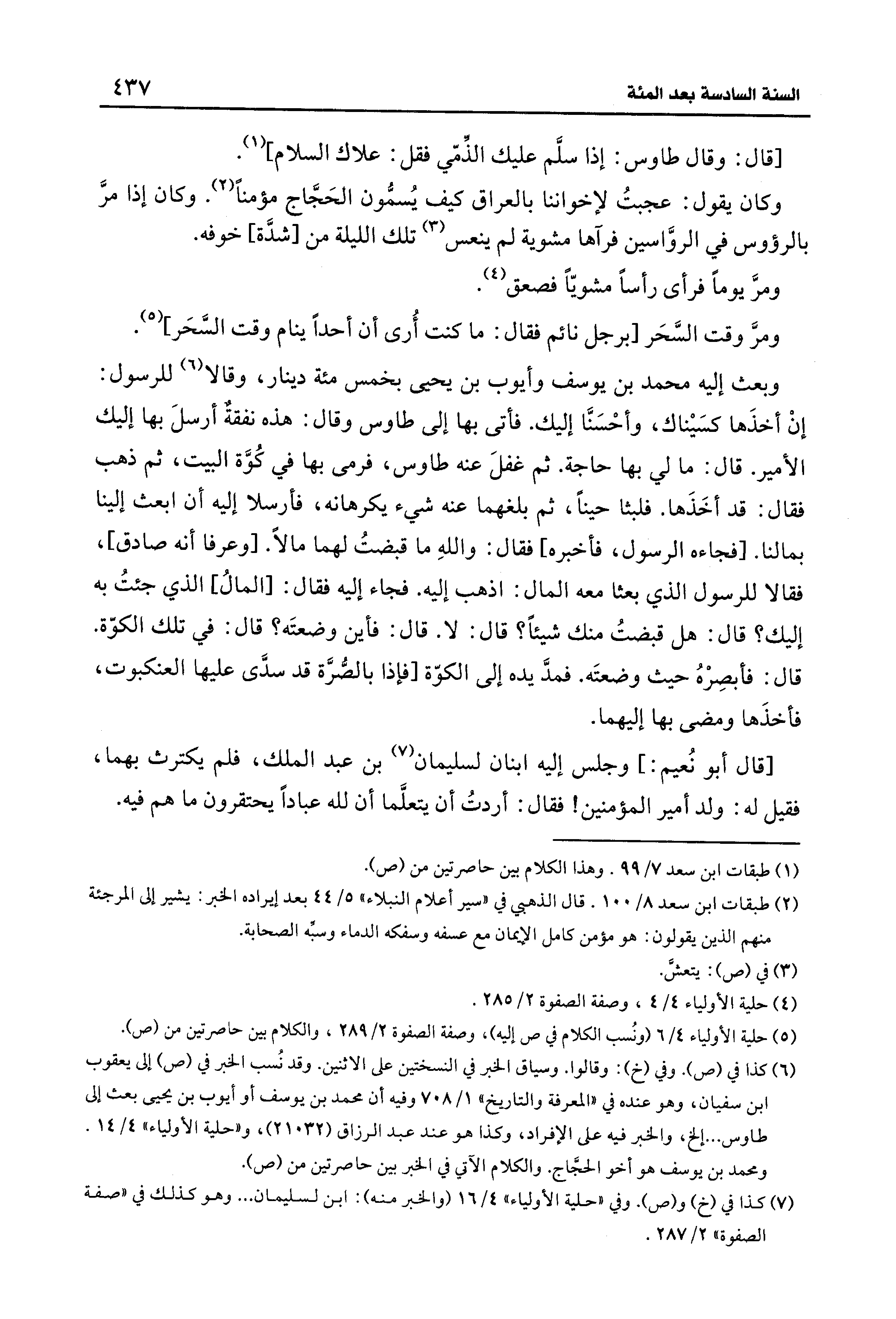 (¬5) حلية الأولياء 4/ 6 (ونُسب الكلام في ص إليه)، وصفة الصفوة 2/ 289، والكلام بين حاصرتين من (ص).