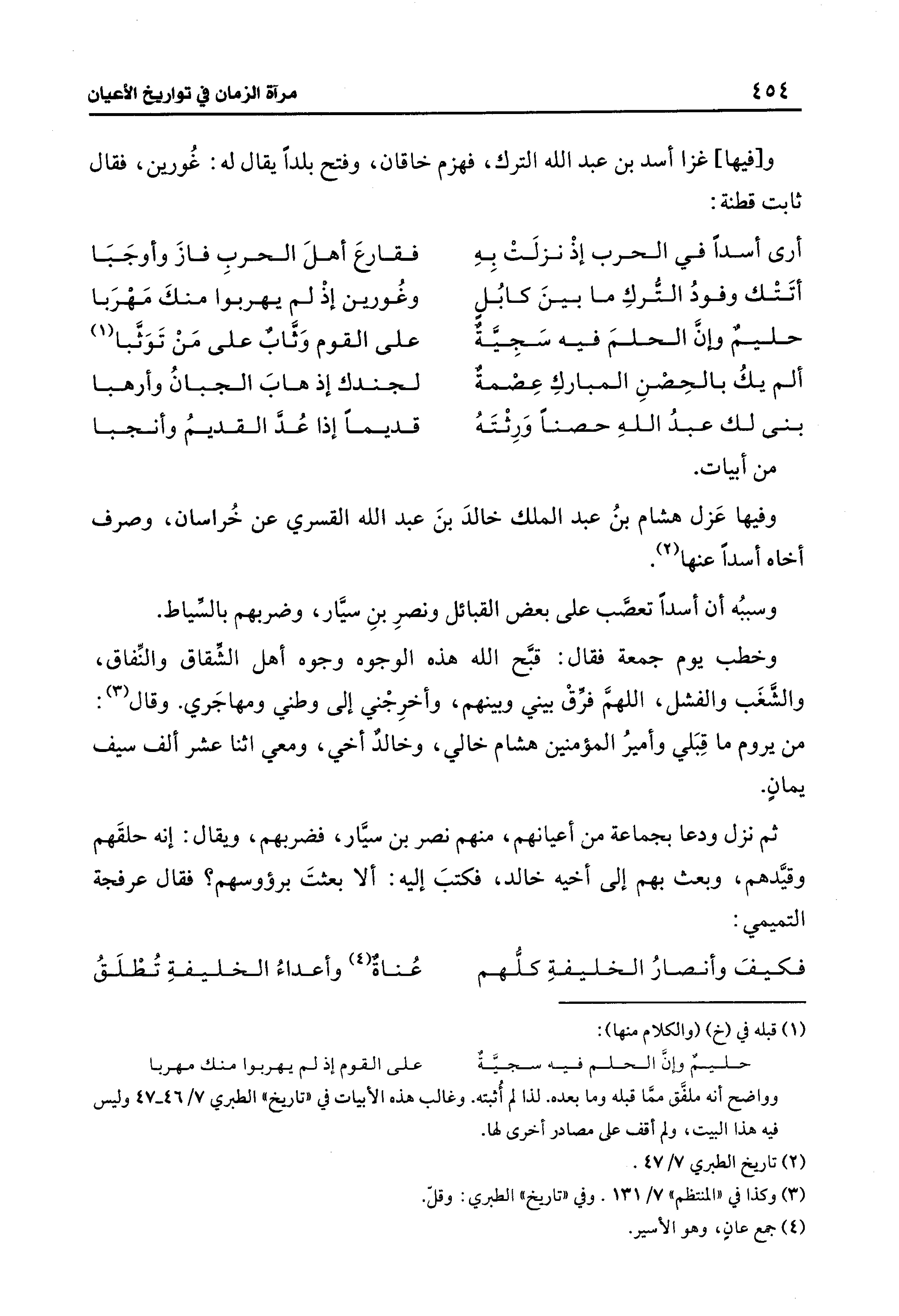 ثم نزل ودعا بجماعة من أعيانهم، منهم نصر بن سيَّار، فضربهم، ويقال: إنه حلقَهم وقيَّدهم، وبعث بهم إلى أخيه خالد، فكتبَ إليه: ألا بعثتَ برؤوسهم؟ فقال عرفجة التميمي: