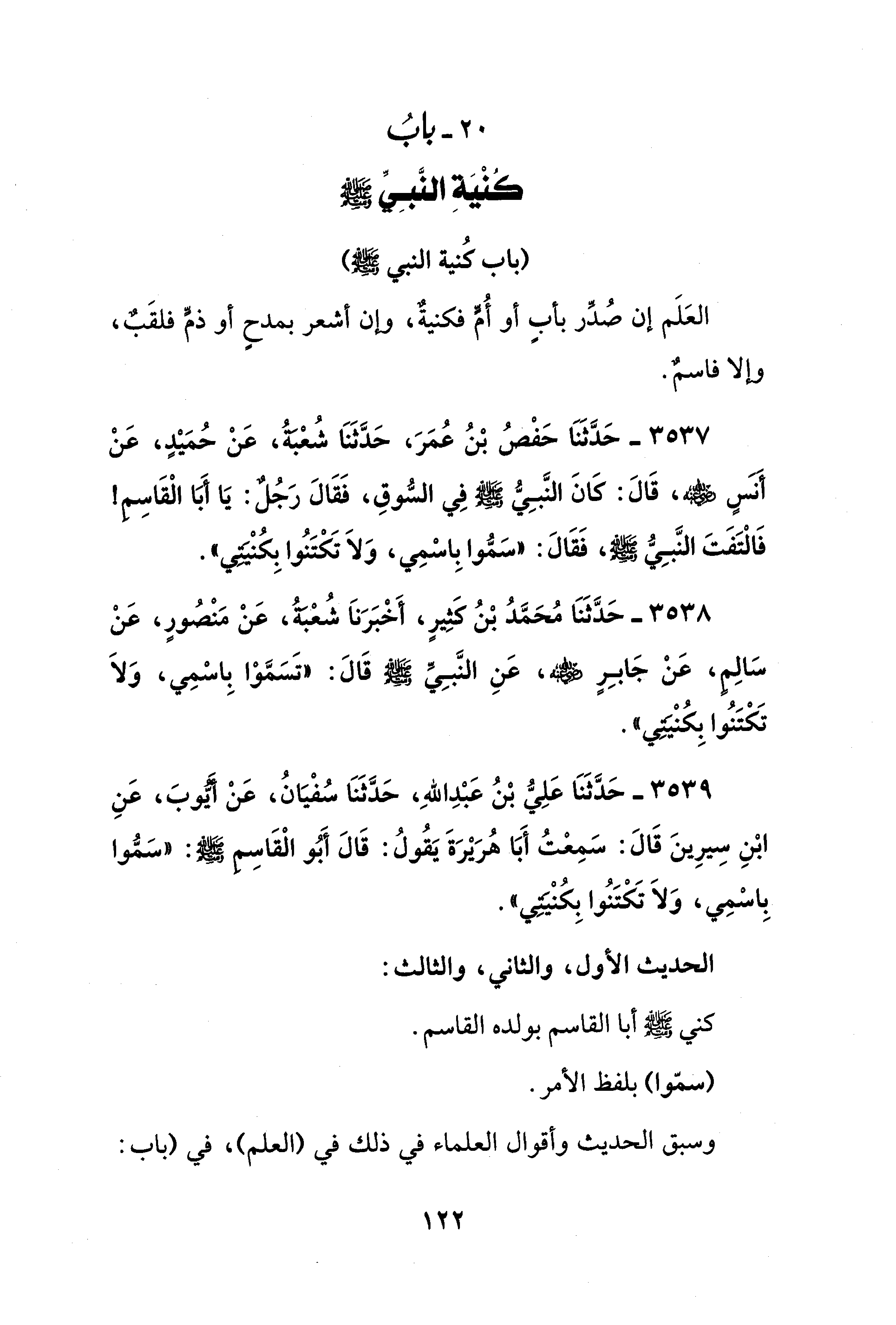 20 - بابُ كُنْيَةِ النَّبِيِّ - صلى الله عليه وسلم -