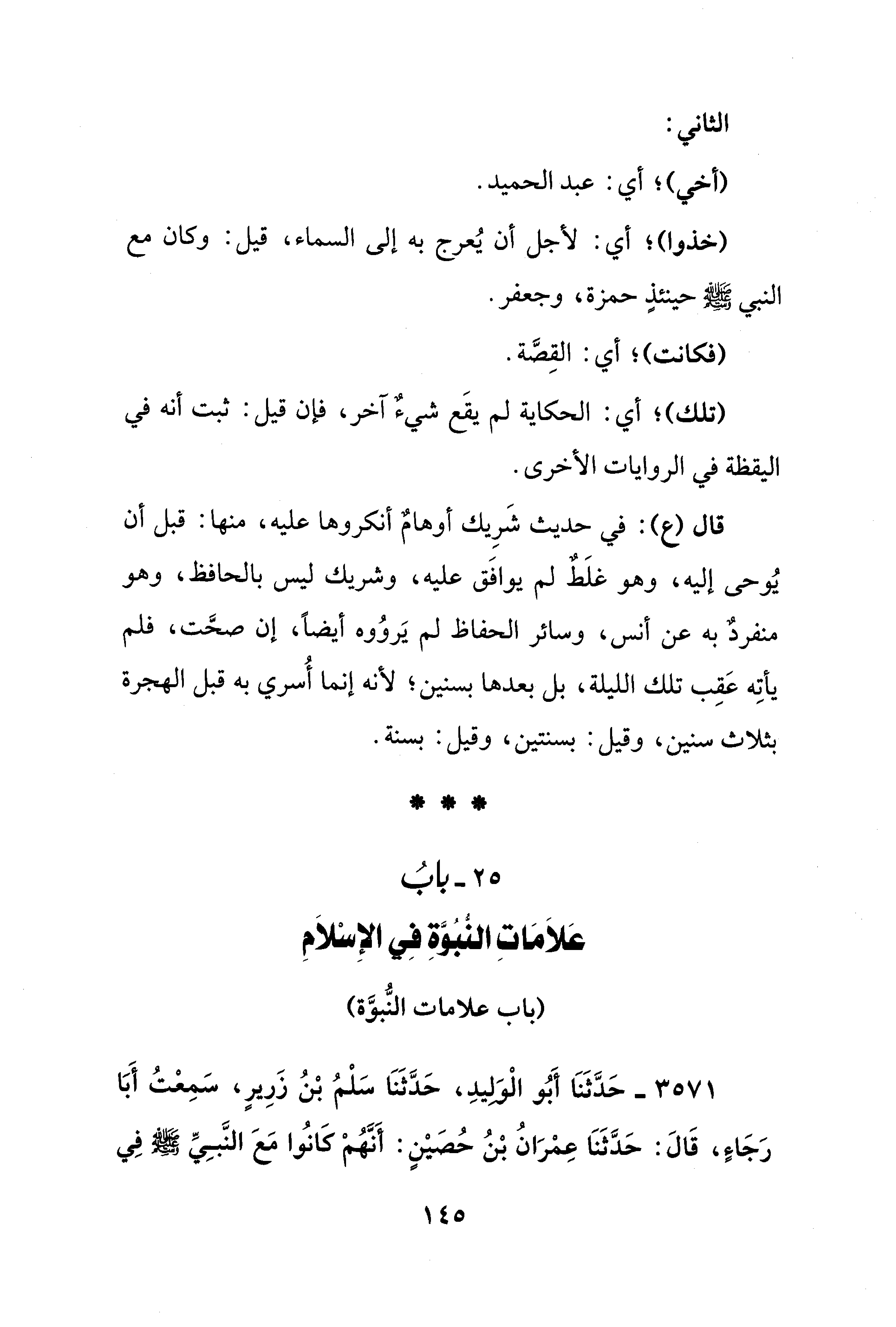 قال (ع): في حديث شَرِيك أوهامٌ أنكروها عليه، منها: قبل أن يُوحى إليه، وهو غلَطٌ لم يوافَق عليه، وشريك ليس بالحافظ، وهو منفردٌ به عن أنس، وسائر الحفاظ لم يَروُوه أيضًا، إن صحَّت، فلم يأتِه عَقِب تلك الليلة، بل بعدها بسنين؛ لأنه إنما أُسري به قبل الهجرة بثلاث سنين، وقيل: بسنتين، وقيل: بسنة.